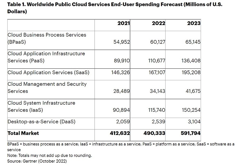 Gartner预计,PaaS和软件即服务(SaaS)将受到通胀的最显著的影响,原因是人员配置挑战和对利润保护的关注。但是,这两个分支仍将持续增长。Gartner预测到2023年,PaaS和SaaS的增长率分别为23.2%和16.8%。