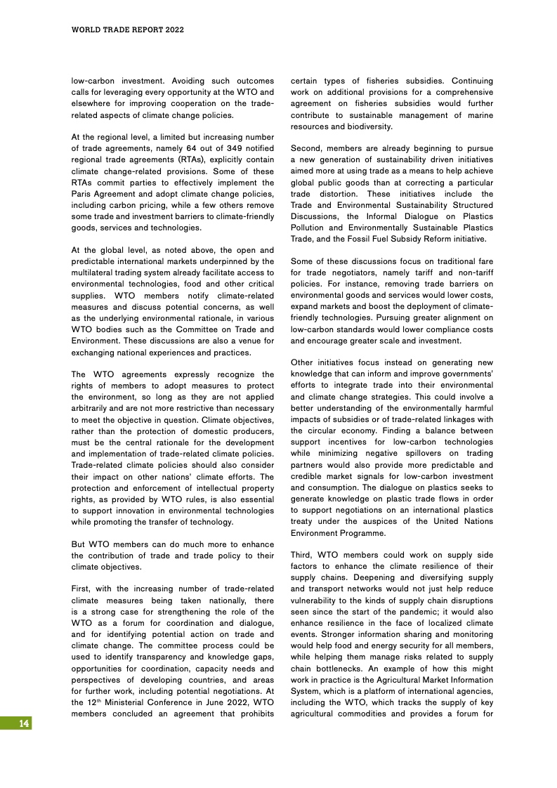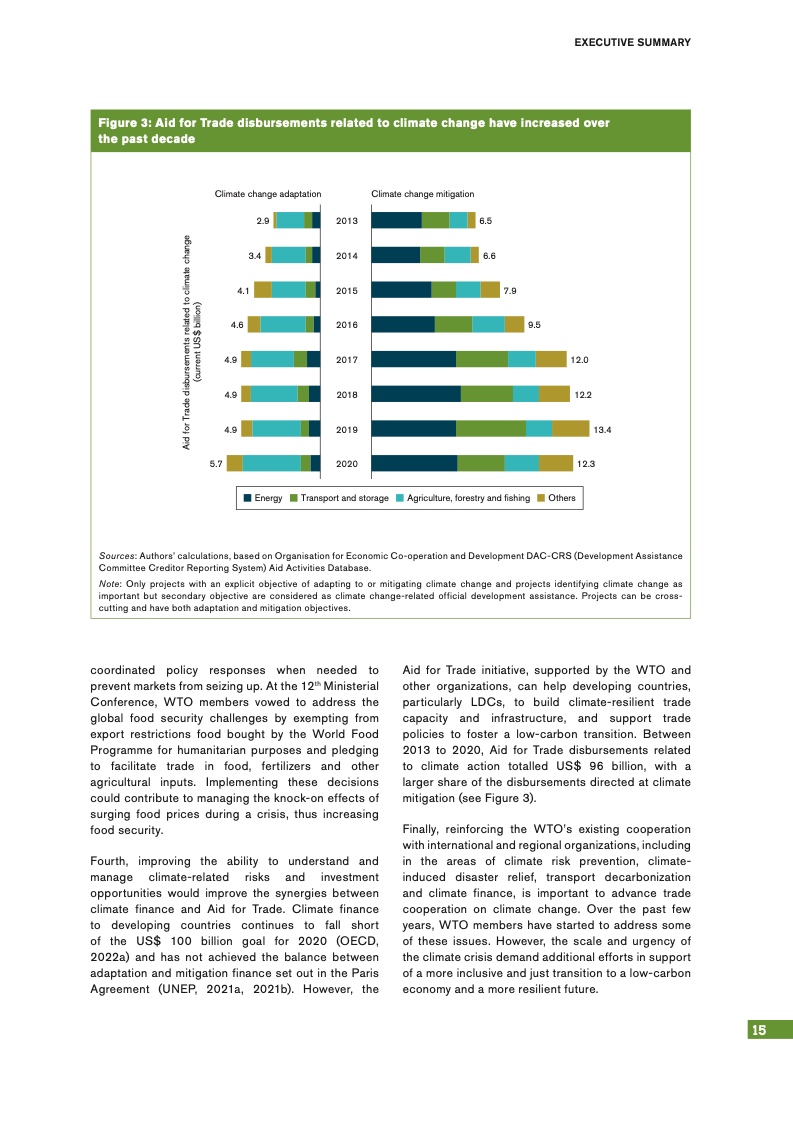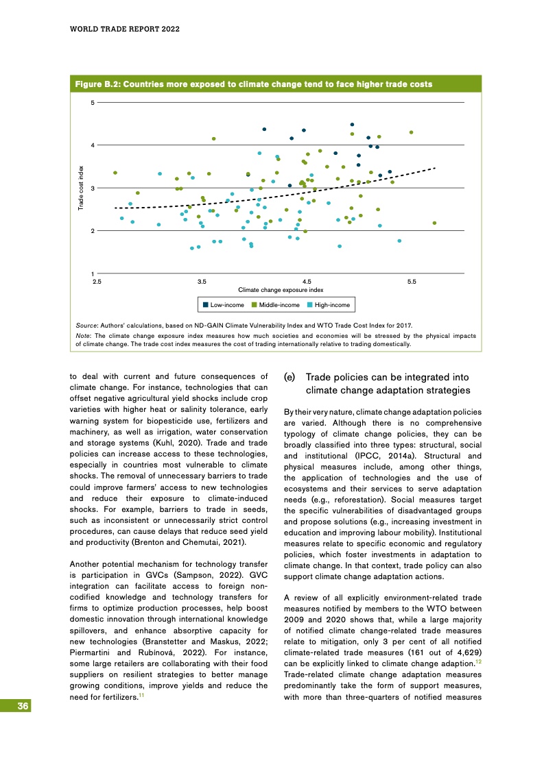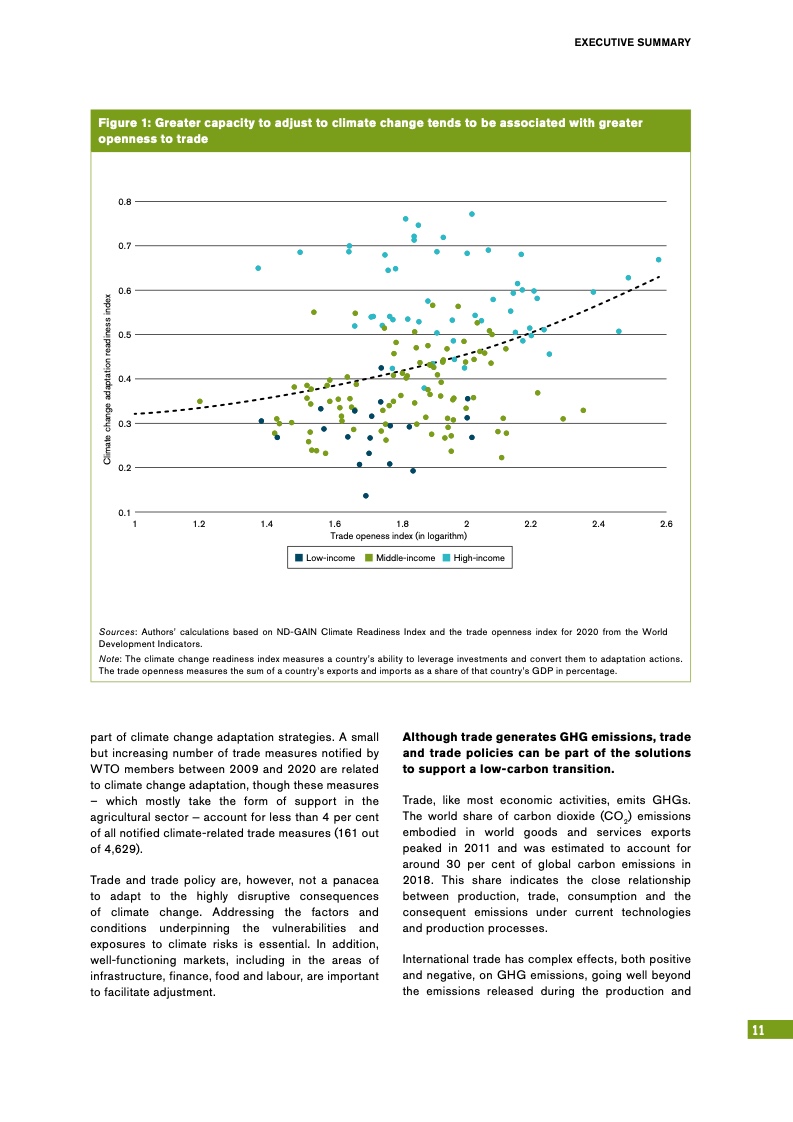 第二,贸易是各国在面对气候破坏时的施加努力的有力途径,可以降低技术和关键商品及服务的成本。从长远来看,开放的国际市场将帮助各国实现必要的经济调整和资源重新分配。这对最脆弱的经济体——最不发达国家、小岛屿发展中国家和内陆发展中国家尤其重要。
