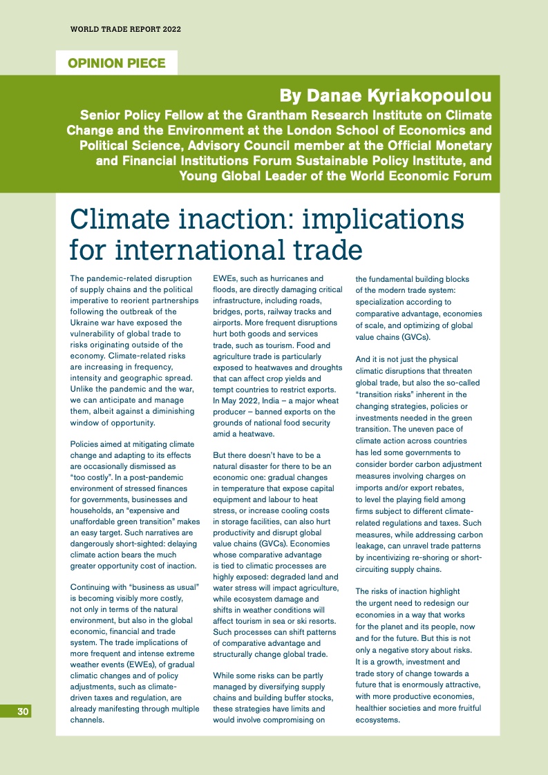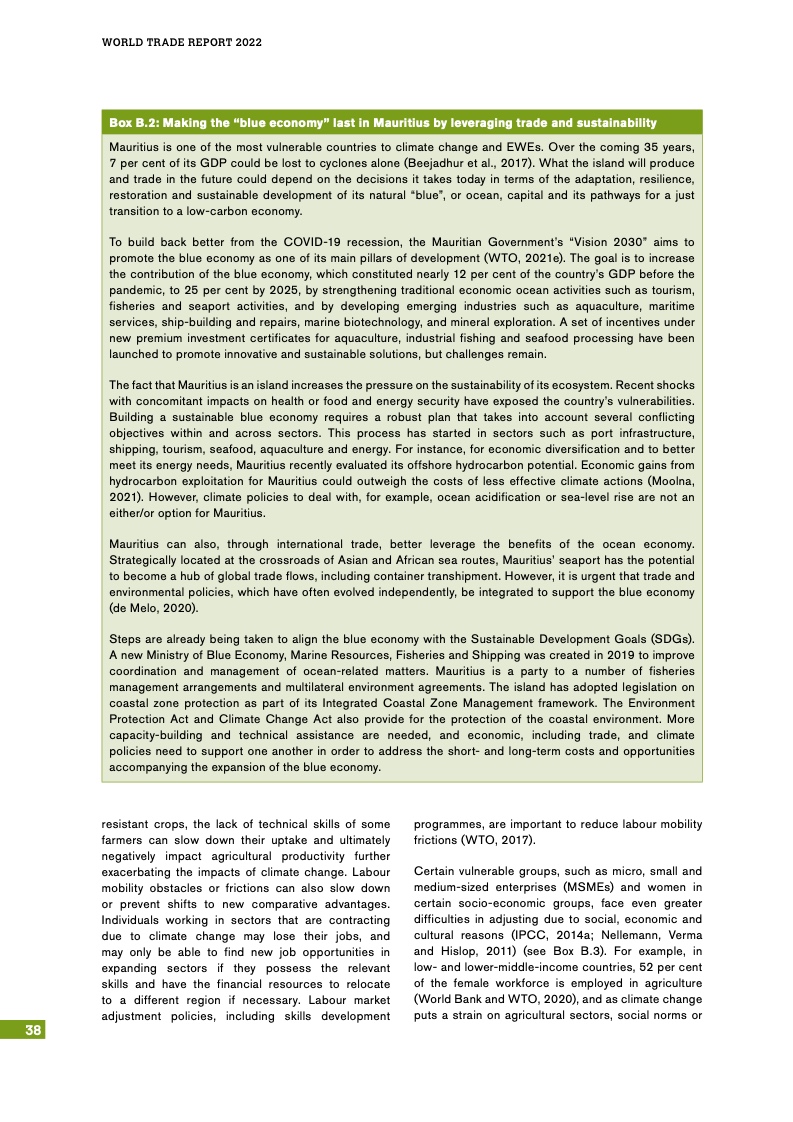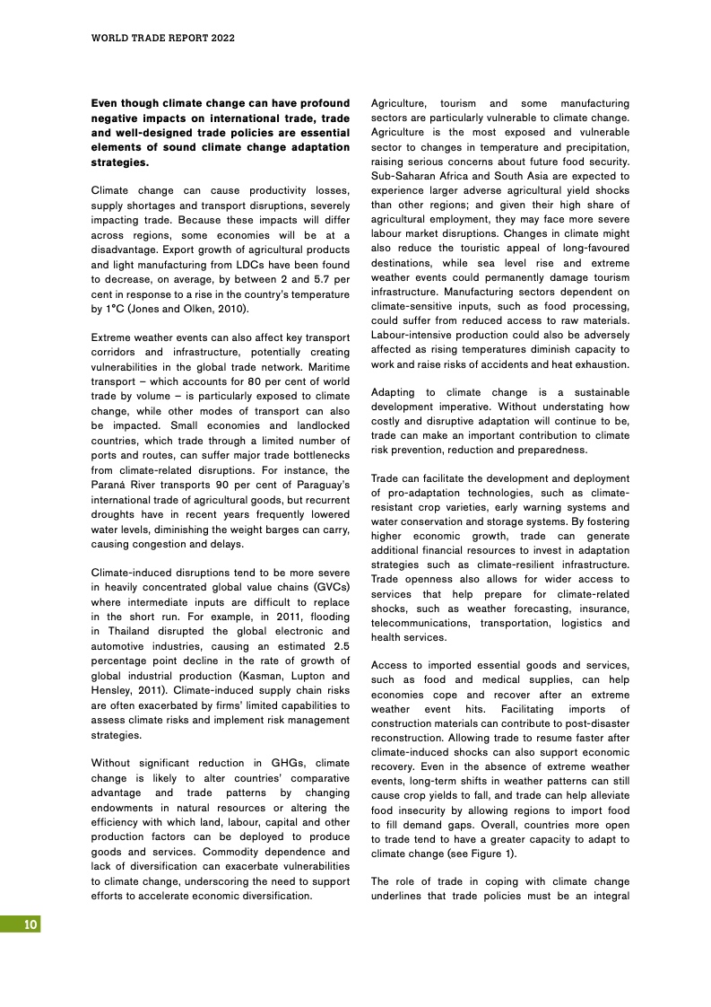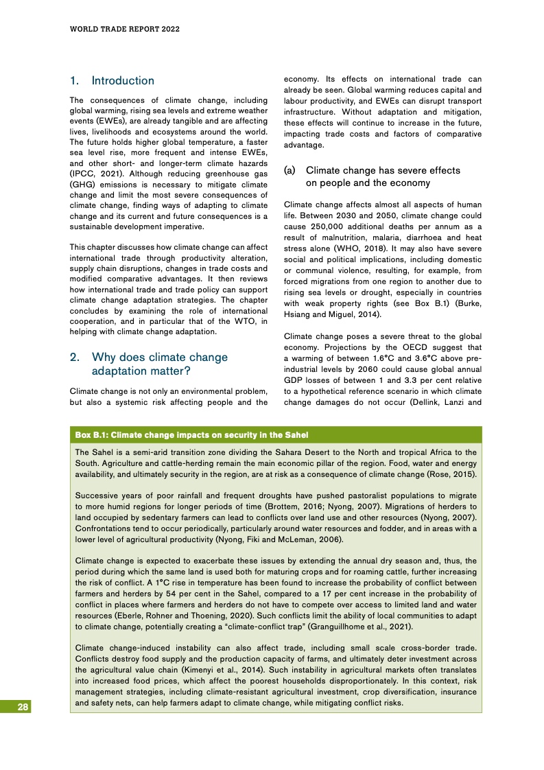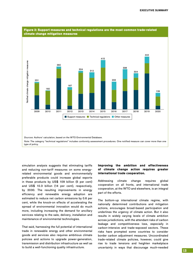 第二,贸易是各国在面对气候破坏时的施加努力的有力途径,可以降低技术和关键商品及服务的成本。从长远来看,开放的国际市场将帮助各国实现必要的经济调整和资源重新分配。这对最脆弱的经济体——最不发达国家、小岛屿发展中国家和内陆发展中国家尤其重要。