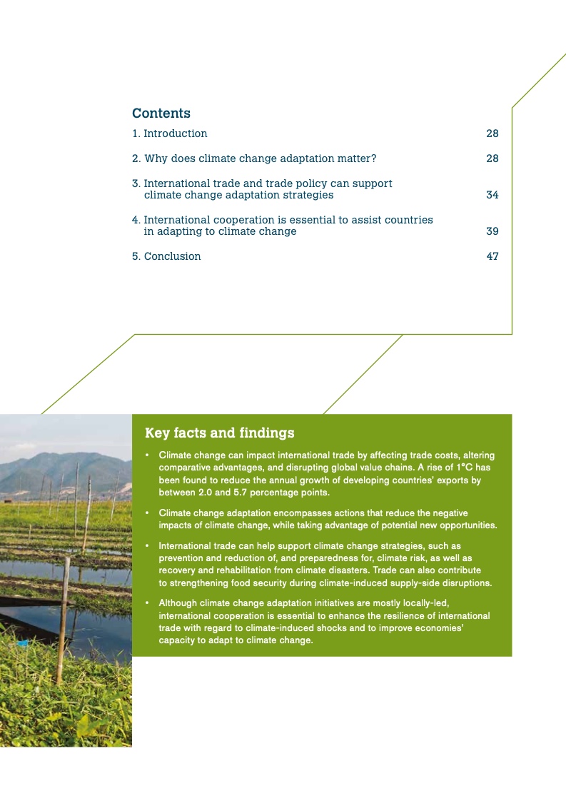 第三,贸易可以降低减缓气候变化的成本——通过支持减少或防止温室气体排放,并加快向低碳经济的过渡和创造绿色就业机会。报告中提出的世贸组织模拟结果表明,到2030年,取消与能源有关的环境产品的关税和减少非关税措施可以使出口增加5%,而由此带来的能源效率和可再生能源吸收的增加将使全球排放量减少0.6%。