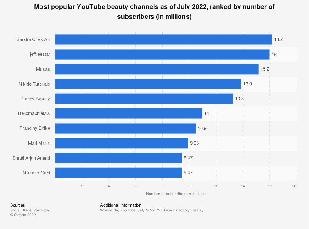 化妆品行业已经从Instagram和YouTube等社交媒体渠道的日益普及中受益。这些平台不仅在特定人群中具有很高的影响力,还创造了对美容产品的需求,有助于填补化妆品品牌和消费者之间的差距。截至2021年9月,墨西哥美妆博主Yuya是视频平台YouTube上最受欢迎的美妆内容创造者,她的频道有2490万订户。时尚和美容相关的内容,如化妆和护肤教程、化妆品采购和产品推荐是YouTube上最受欢迎的内容之一。