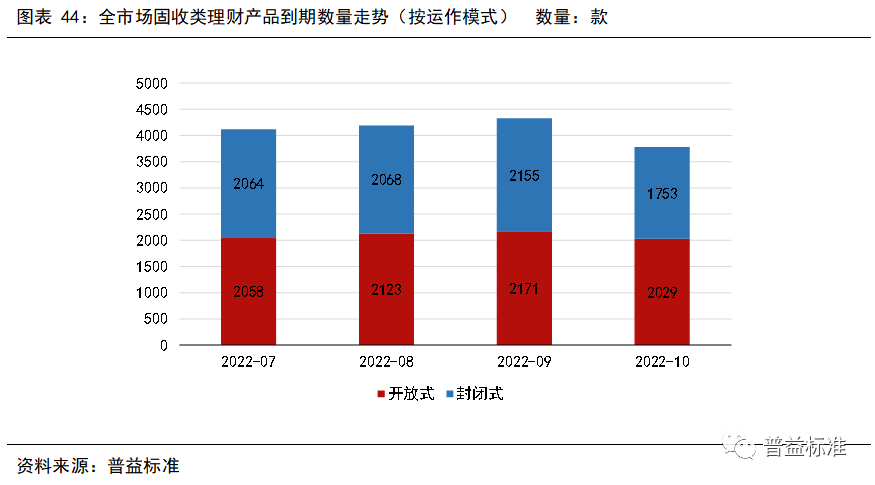 上述3782款到期的固定收益类产品中,开放式产品有2029款,环比减少142款;封闭式产品有1753款,环比减少402款。