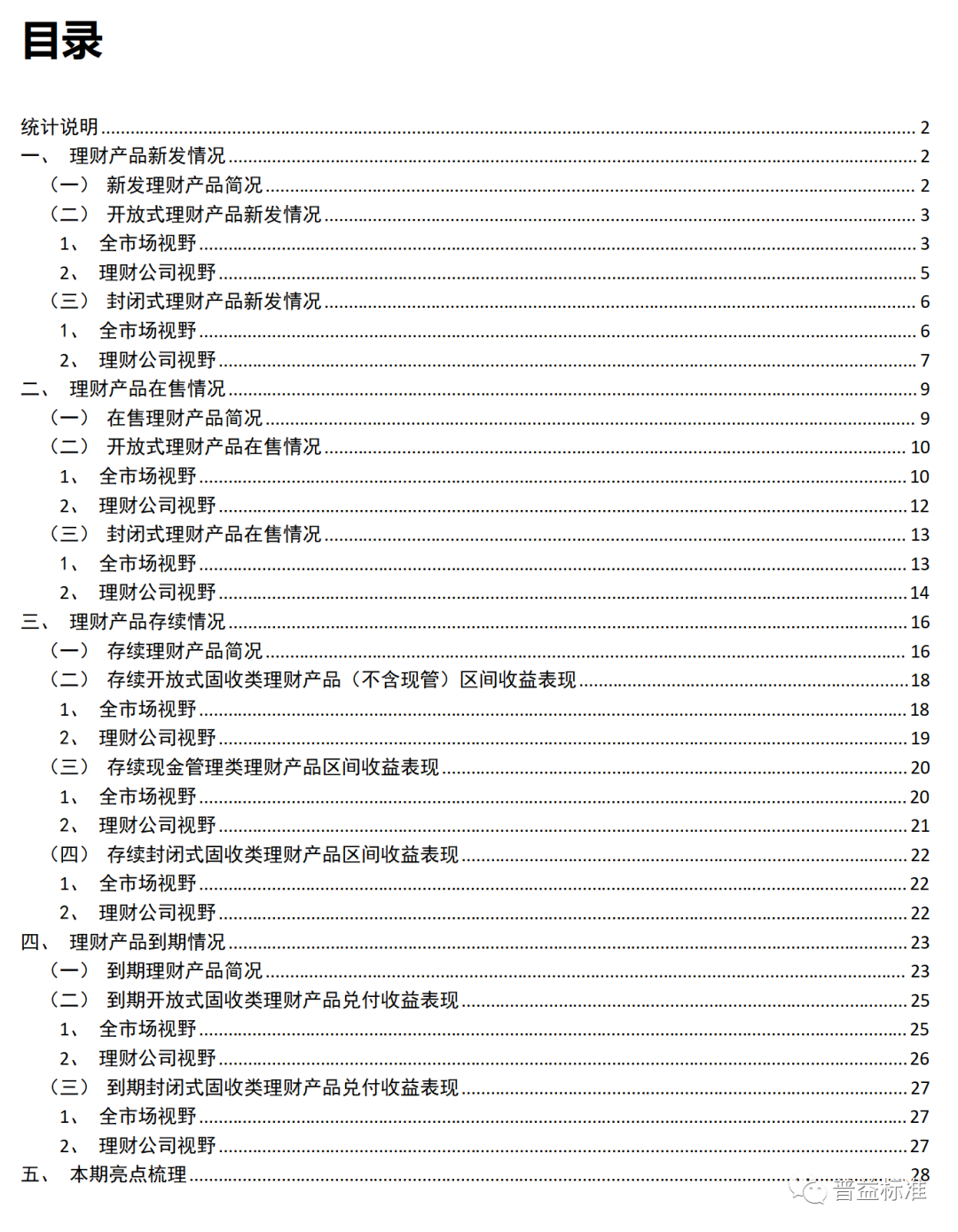 为适应银行理财市场全面净值化转型的新发展阶段,除另有说明外,本报告所有统计结果均不包含非净值型产品、结构性产品以及外币产品。