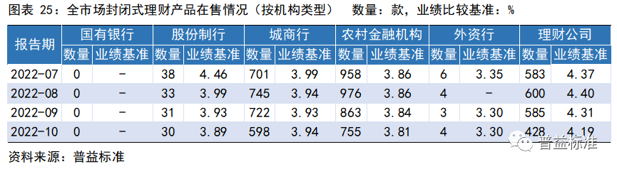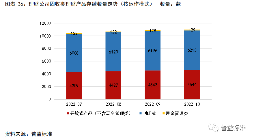 上述10986款存续的固定收益类产品中,现金管理类产品有129款,环比增加1款;开放式产品(不含现金管理类产品)有4644款,环比增加101款;封闭式产品有6213款,环比增加17款。