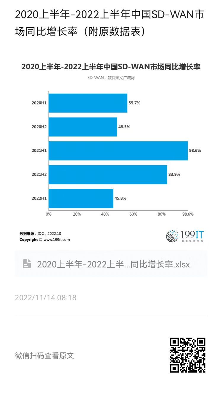 2020上半年-2022上半年中国SD-WAN市场同比增长率(附原数据表) ​​​​