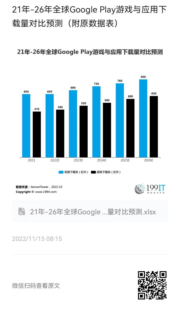 - 2021年-2026年全球Google Play游戏与应用支出对比预测(附原数据表)