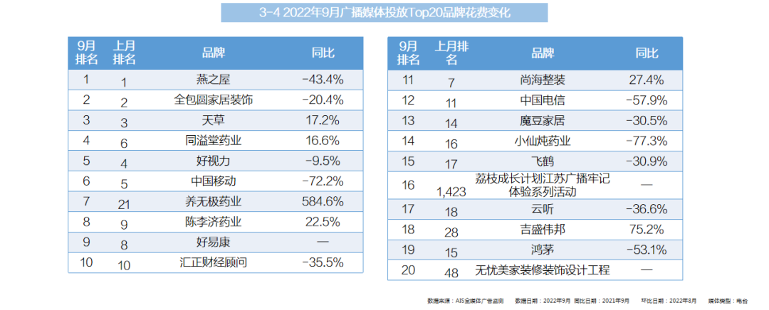 - TOP20品牌榜中,80%的品牌客户较去年同期的投放费用出现明显的增长;而较上月的排名对比,益倍适药业提升明显。