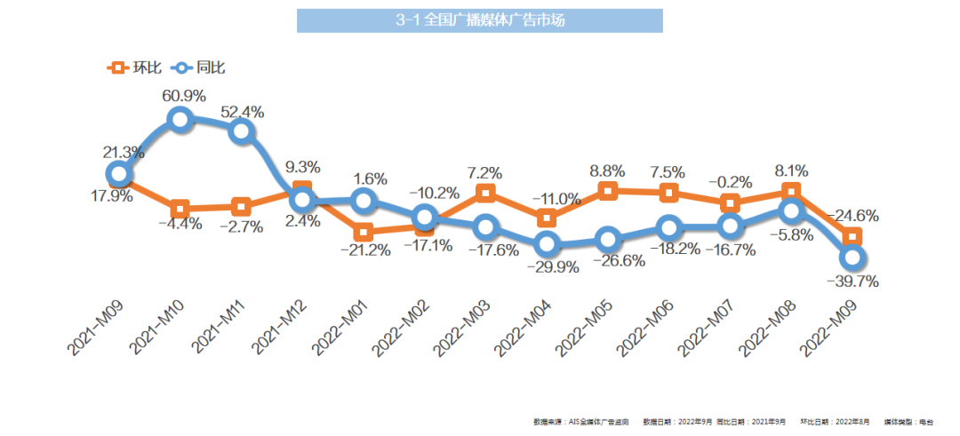- 同比与环比同时上升的行业有药品及健康产品、饮料、零售服务、商业/工业/农业共4个行业,其中药品及健康产品和饮料行业的投放刊例花费排名第一和第二;同时药品及健康产品行业的环比上升幅度是前十行业中最大的;而从同比数据来看,上升幅度最大的行业是媒体相关行业,下降幅度最大的是化妆品/个人卫生用品行业。