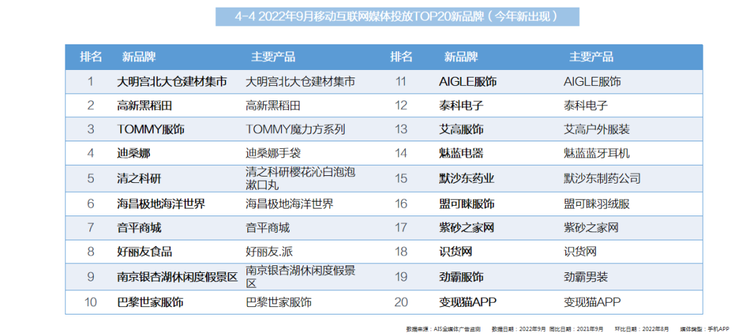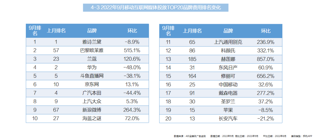 - TOP20排名中,排名前3的品牌客户无变化,整体前20的品牌名单变化不大。
