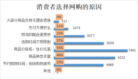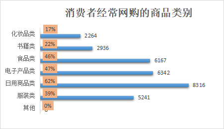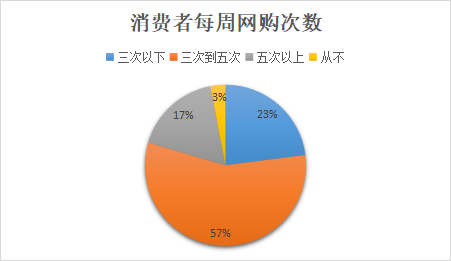 参与此次调查的消费者中18~30岁的占六成,53.34%的被调查消费者为男性,超五成的消费者每周网络购物次数达到3~5次,可见网络消费的主力军为青壮年群体。