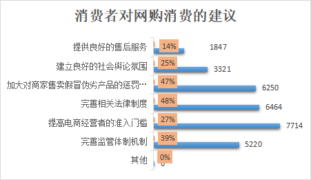 49.52%的消费者认为当下网络消费平台侵权事件与消费投诉频发的主要原因是网络付款和物流不完善,超五成消费者希望提高电商经营者的准入门槛,完善相关法律制度。
