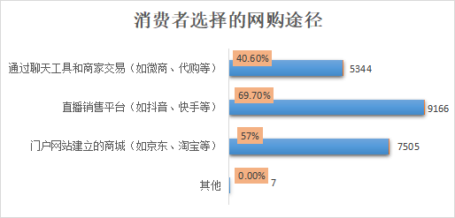 近七成的消费者更习惯选择抖音、快手等直播销售平台,选购最多的项目分别是日用商品和电子产品,分别占比61.9%和47.21%。超五成消费者认为选择网购的主要原因是商品价格低、性价比高。