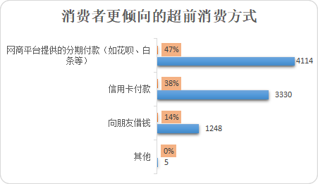 超五成消费者会在网络购物上花费每月收入的20%-30%,并且近七成的消费者会超前消费,47.3%的消费者会使用网商平台提供的分期付款服务进行消费。
