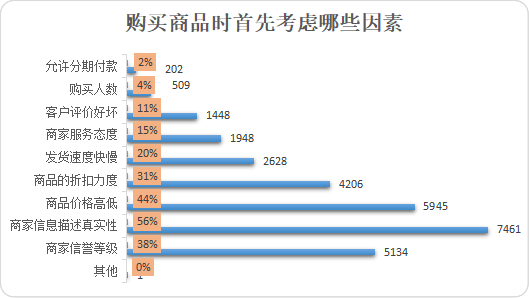 超五成消费者在网络平台选购商品时,最先考虑的因素是商家信息描述的真实性,最担心的是商品质量不尽如人意,不过在遇到消费纠纷时,近六成的消费者会优先通过与商家协商或向购物平台官方进行投诉的方式解决。