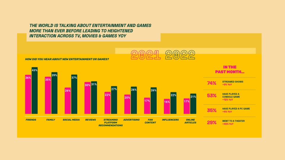 Fandom调研了来自美国和英国的5000名娱乐和游戏迷,以了解不断变化的娱乐环境。最终,Fandom将这些调研结果与基于第一方数据的独家洞察相结合,并形成了年度粉丝报告。