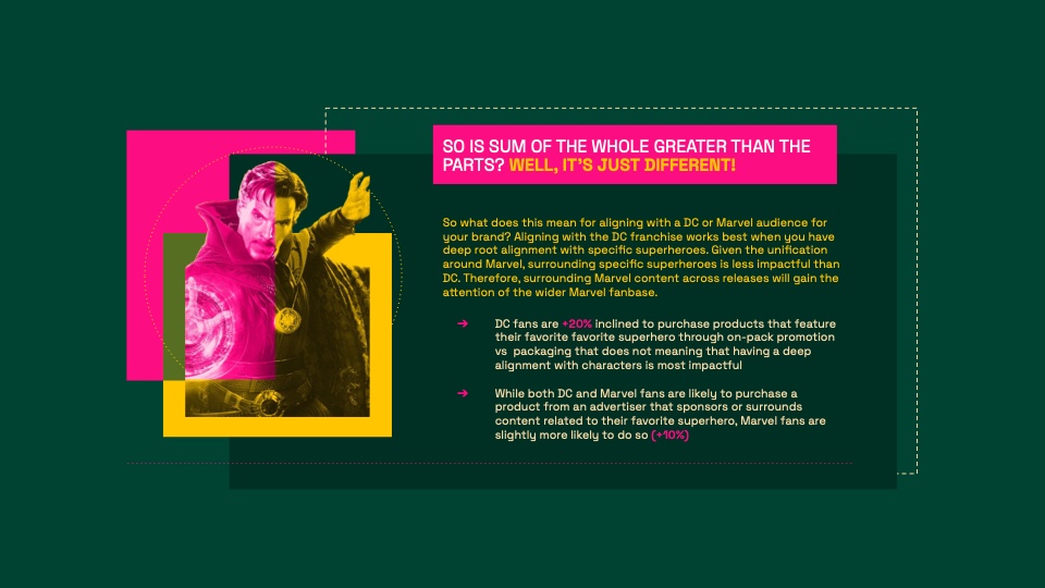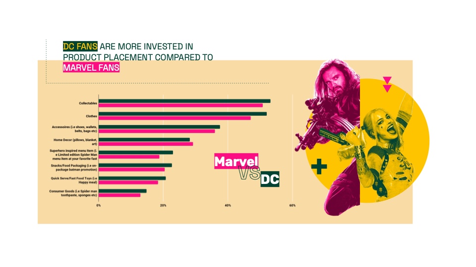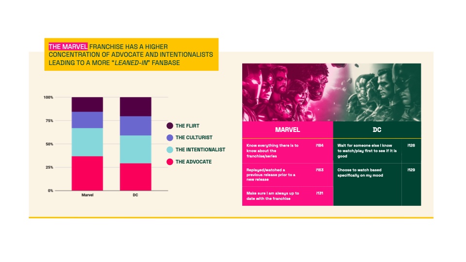 ● 以角色为主导的IP都能大放异彩:DC粉丝购买以他们最喜爱的超级英雄为主角的产品的可能性高出20%。