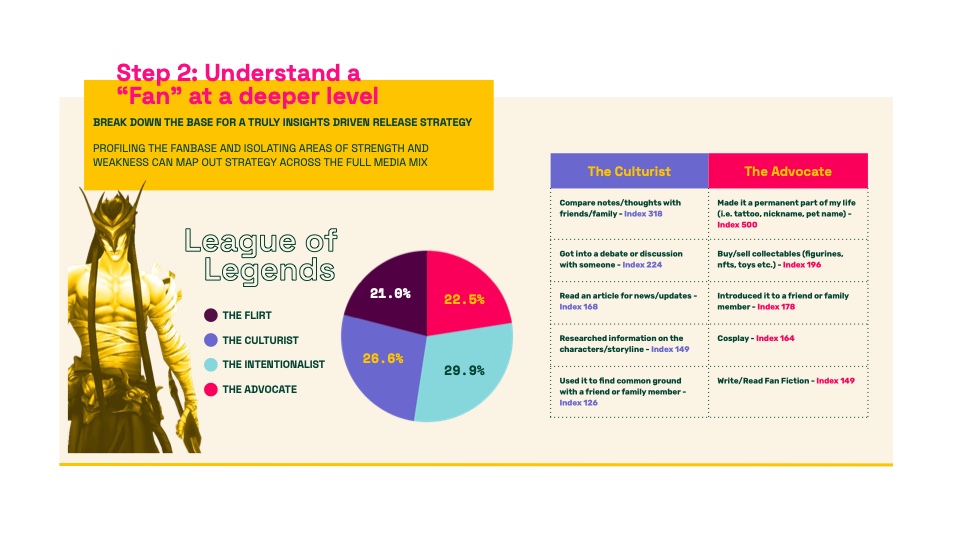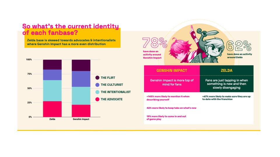 此外,《粉丝报告》对三个案例进行了研究,分别是剖析漫威与DC粉丝、为什么HBO Max的《大学女生的幸福生活》是成功的秘诀以及通过比较《原神》与《塞尔达》来区分服务型游戏(GaaS)模式与传统视频游戏发行模式。案例研究的主要结论包括: