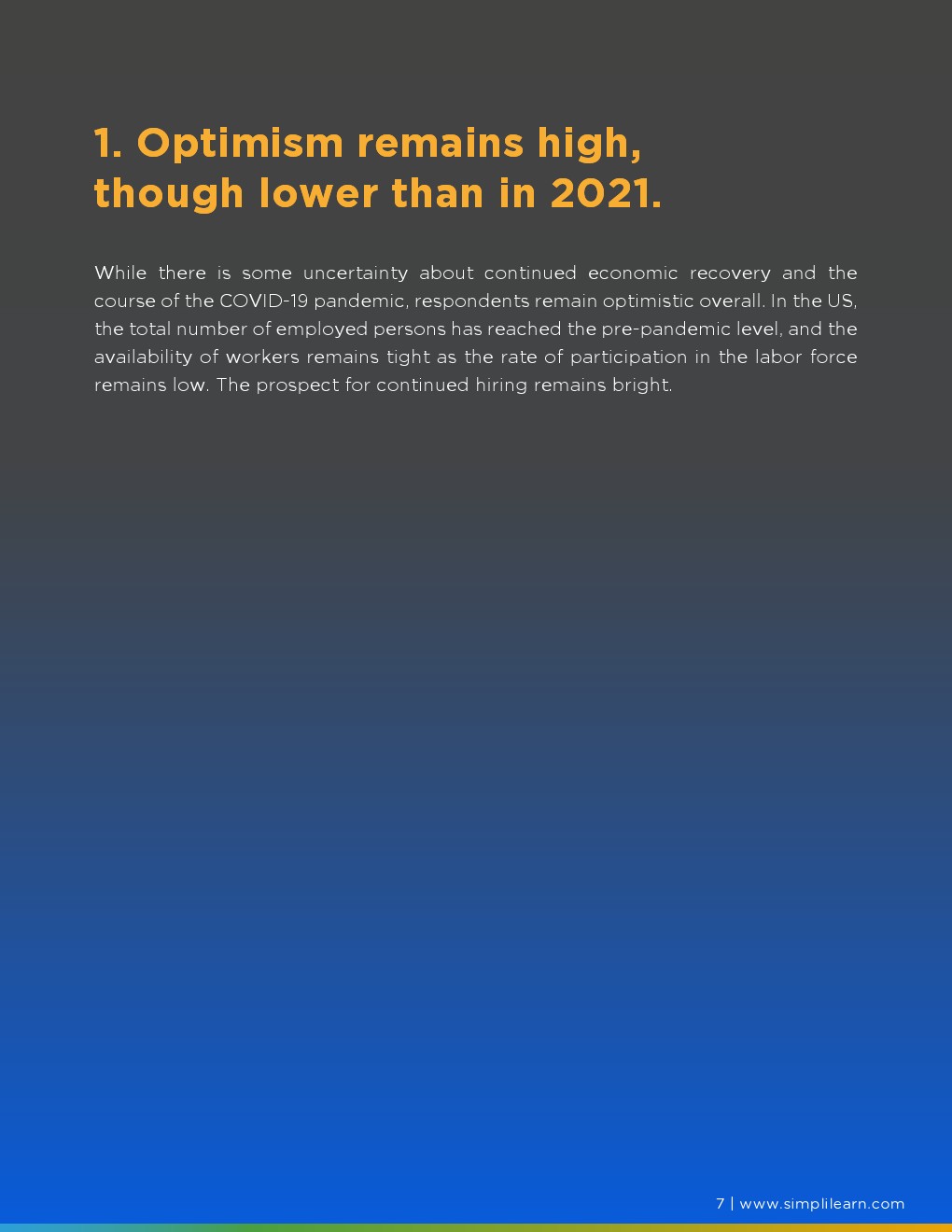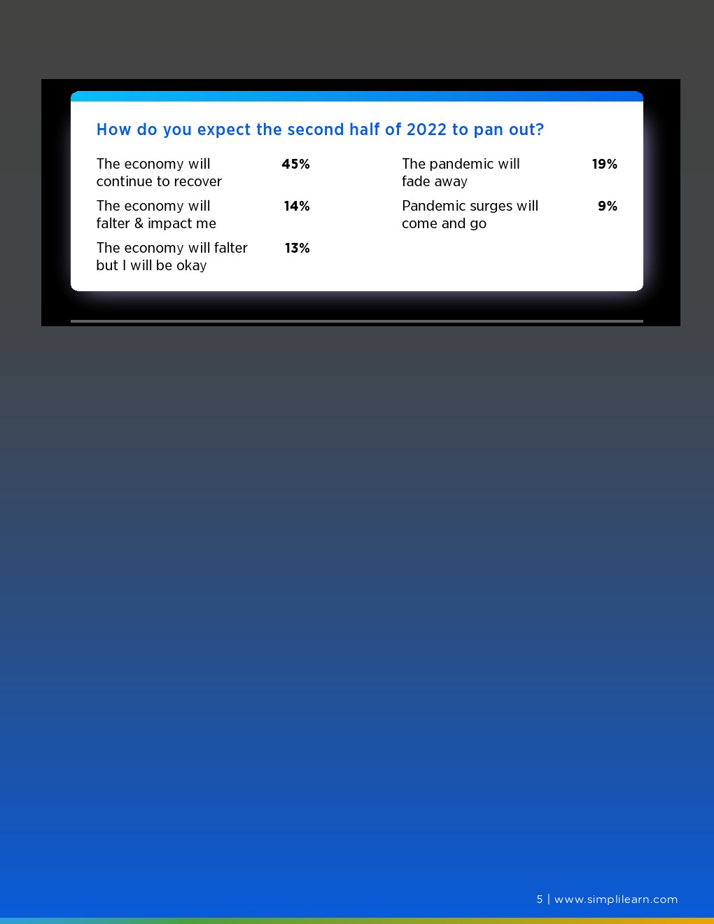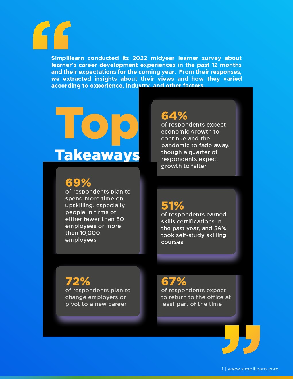 Simplilearn在2022年年中调查了过去12个月学习者的职业发展经历以及他们对未来一年的期望。从他们的回答中提取了他们的观点以及他们的见解如何根据经验、行业和其他因素而改变。