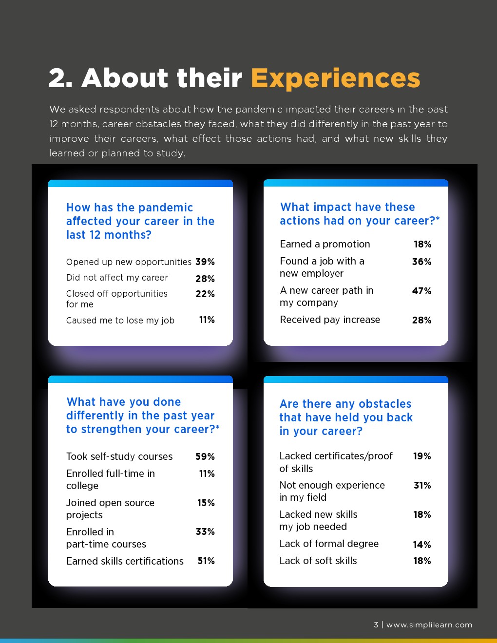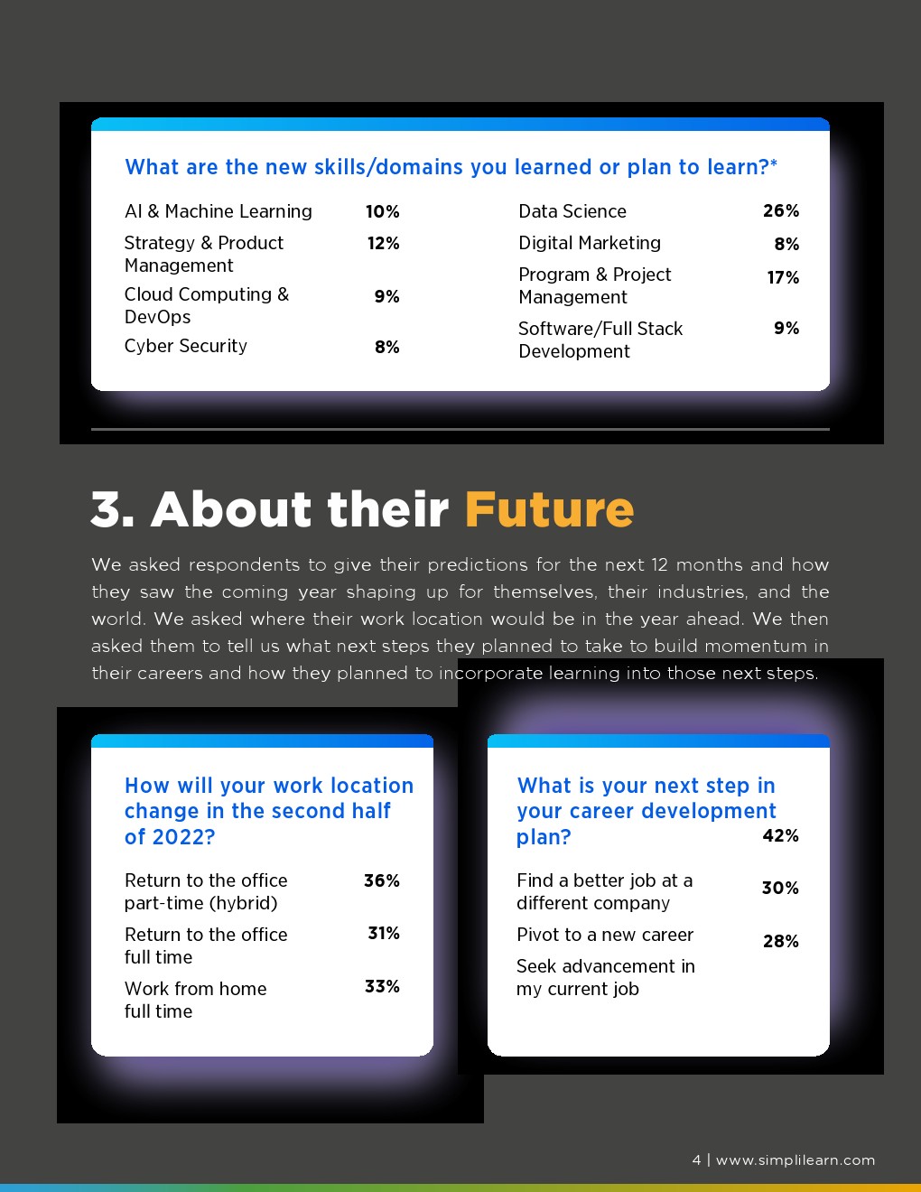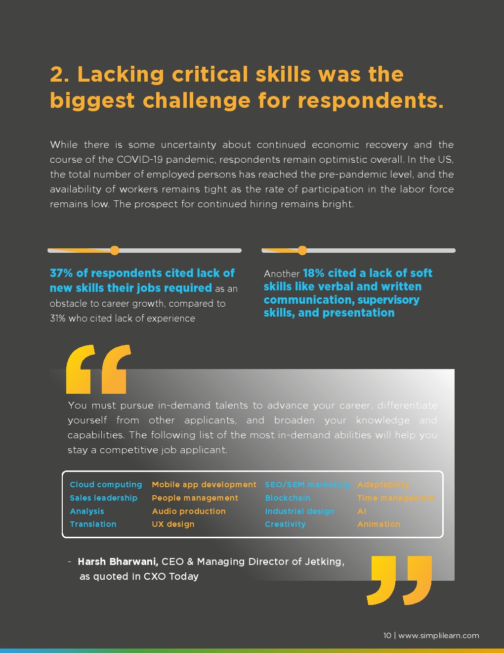 Simplilearn在2022年年中调查了过去12个月学习者的职业发展经历以及他们对未来一年的期望。从他们的回答中提取了他们的观点以及他们的见解如何根据经验、行业和其他因素而改变。
