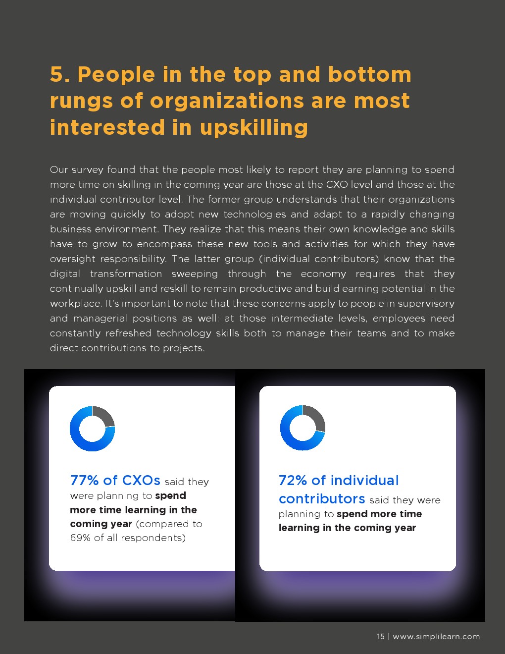虽然受访者对广泛的技能感兴趣,但有两个领域最感兴趣:数据科学和项目管理/敏捷。