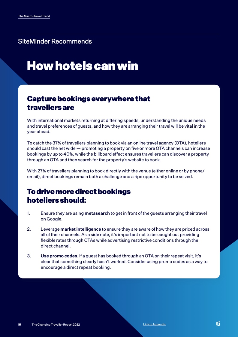 报告指出,要抓住旅客需求,酒店运营商需至少在五个OTA平台发布房源,并采用元搜索、市场舆情工具及折扣码等来提升直接预订量。