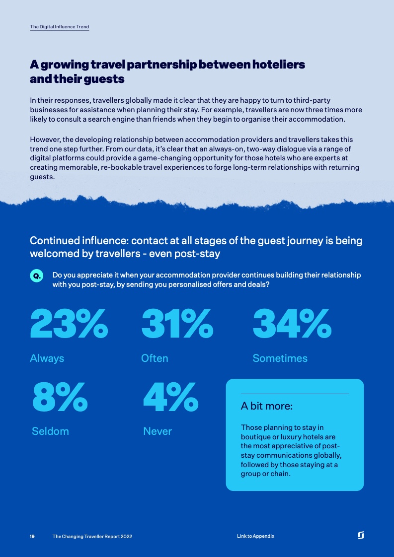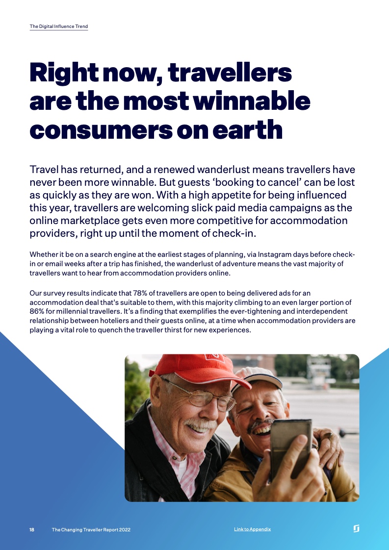 报告数据显示,78%的受访者并不排斥酒店运营商通过广告给他们推送合适的房源,千禧一代中这一占比甚至达到86%。