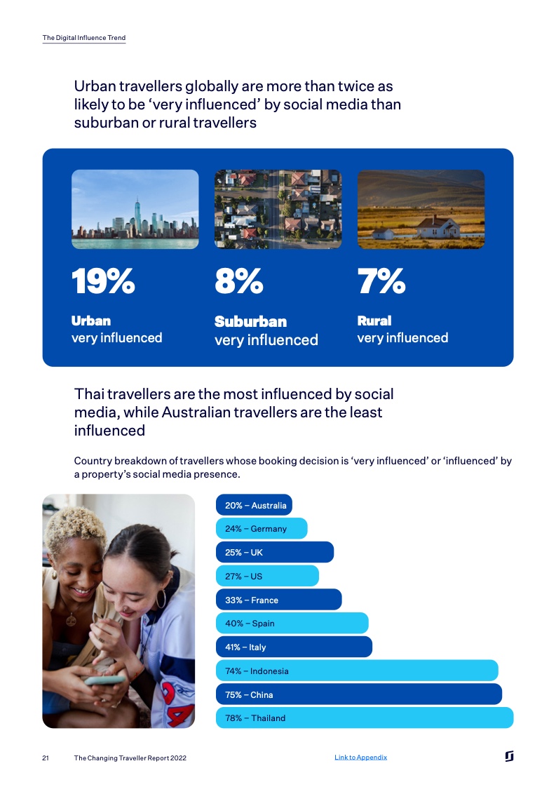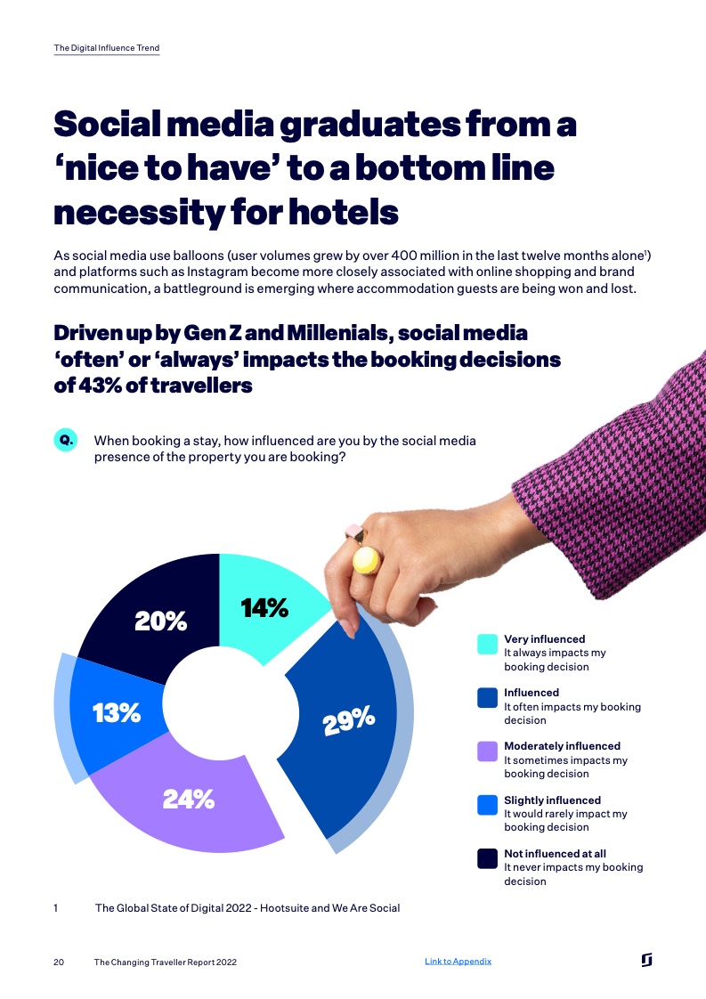 数据显示,43%的受访旅客表示,他们在进行旅游预订决策时,经常或总是受到社交媒体的影响。