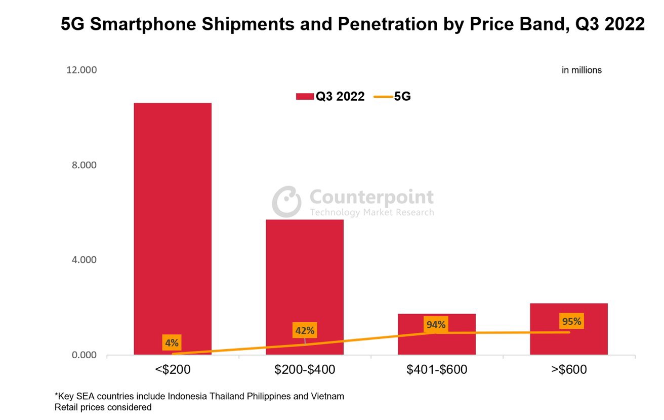 据 Counterpoint Research 称,整个东南亚地区的经济不确定性是造成销量低于预期的原因。这种下降主要体现在价格为 200 美元(约 1416 元人民币)或更低的手机上,不过,那些价格为 400 美元(约 2832 元人民币)或更高的高端机型则表现得更好。