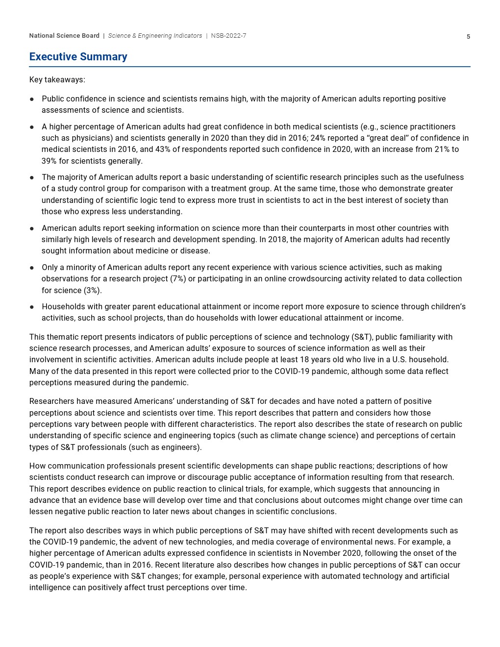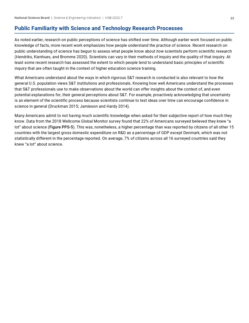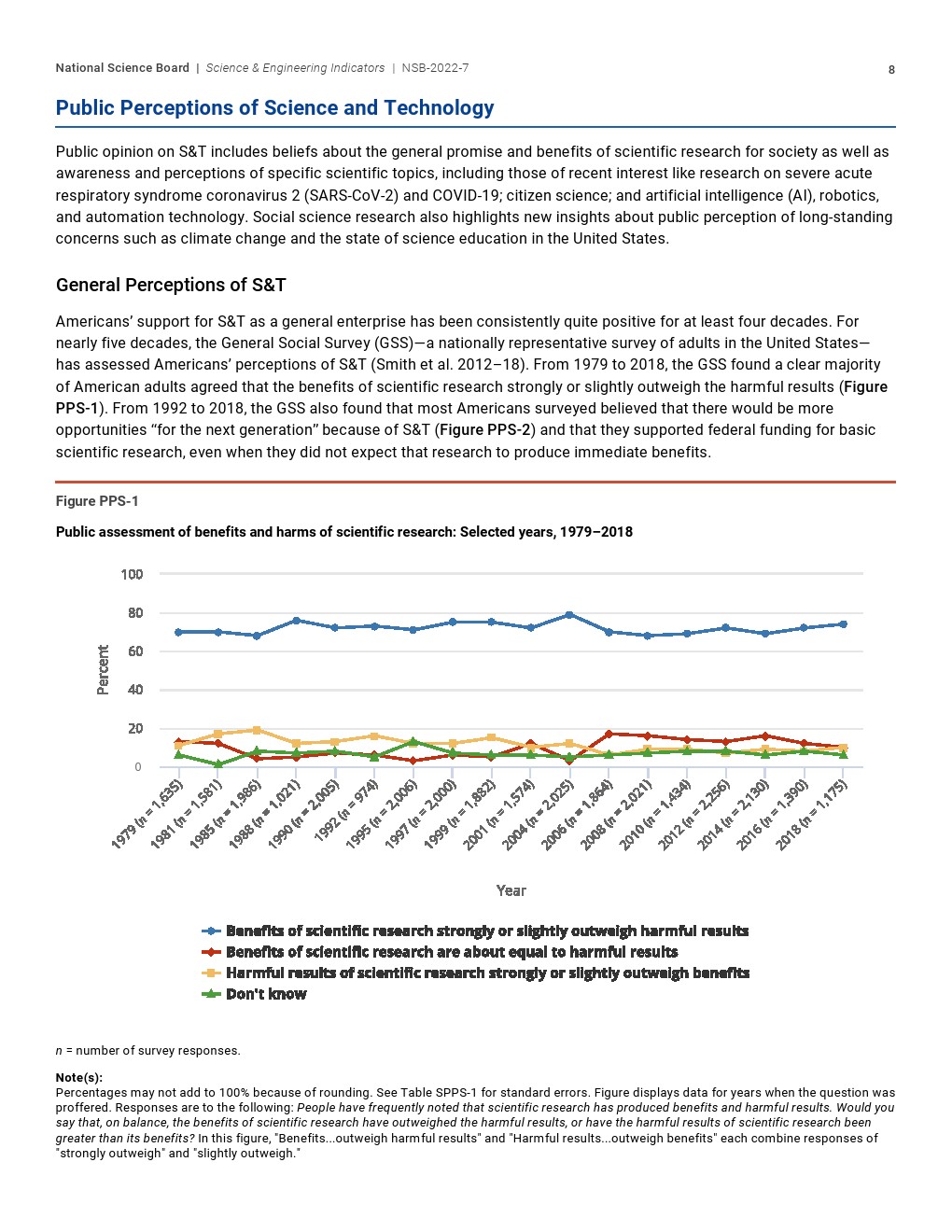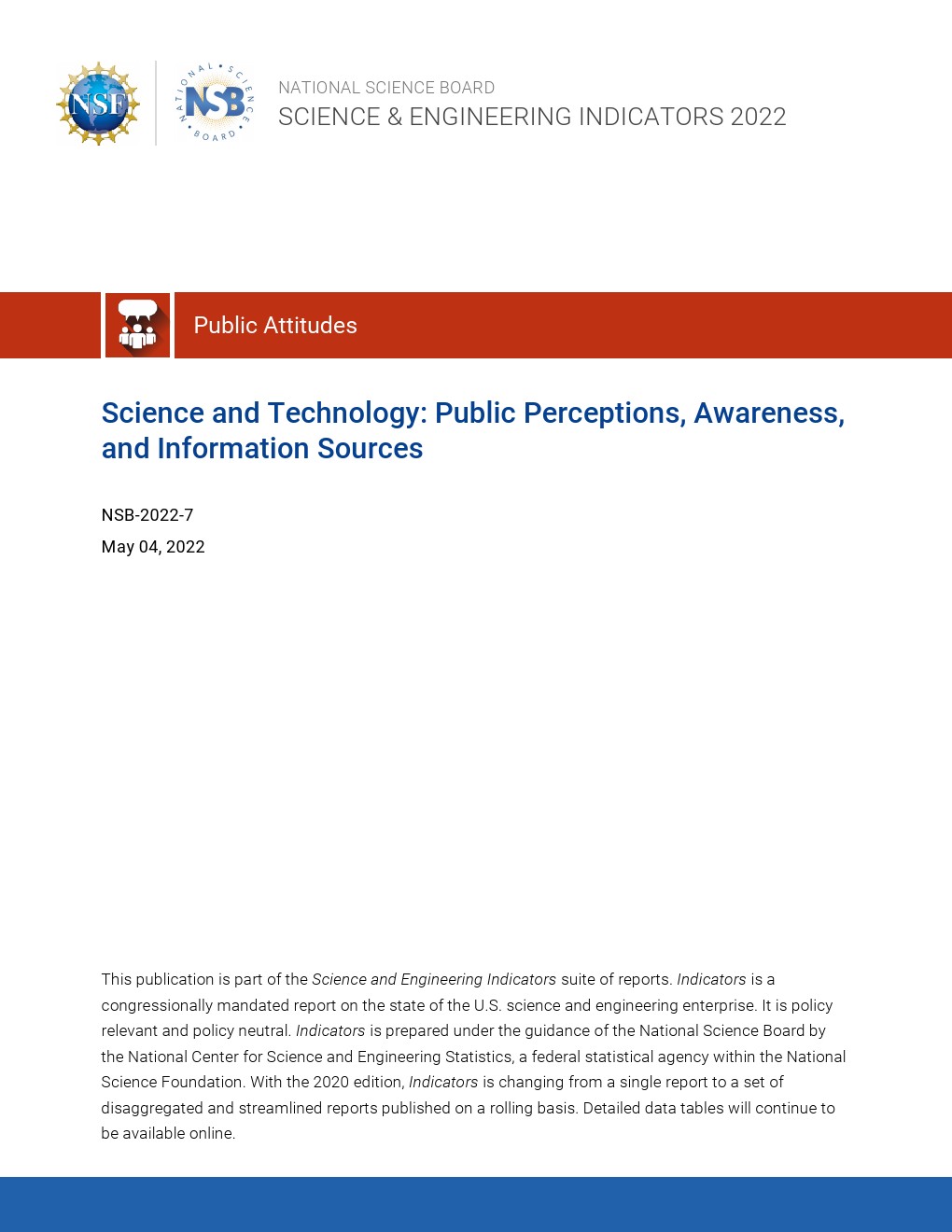 美国国家科学委员会发布了“2022年科学与工程指标”,介绍了公众对科学技术(S&T)的看法、公众对科学研究过程的熟悉程度、美国成年人接触科学信息来源以及他们参与科学活动的情况。美国成年人包括居住在美国家庭中的年满18岁的人。
