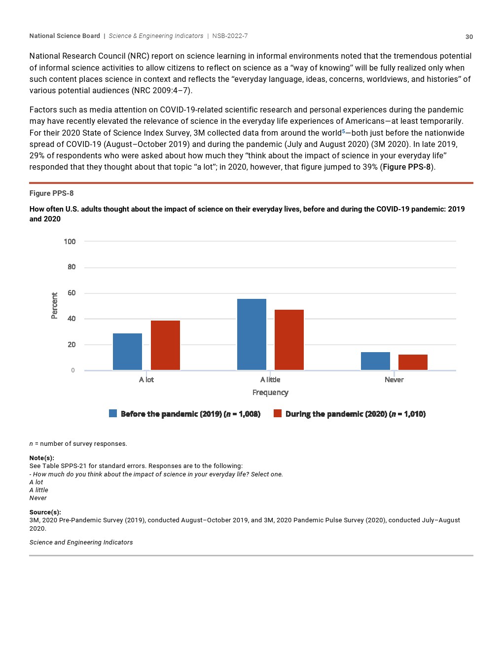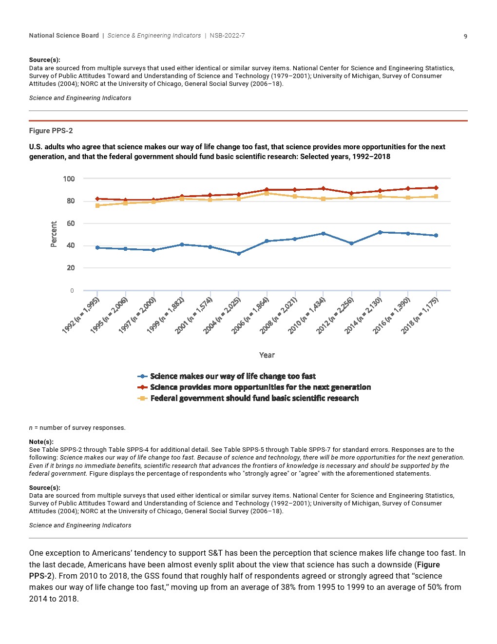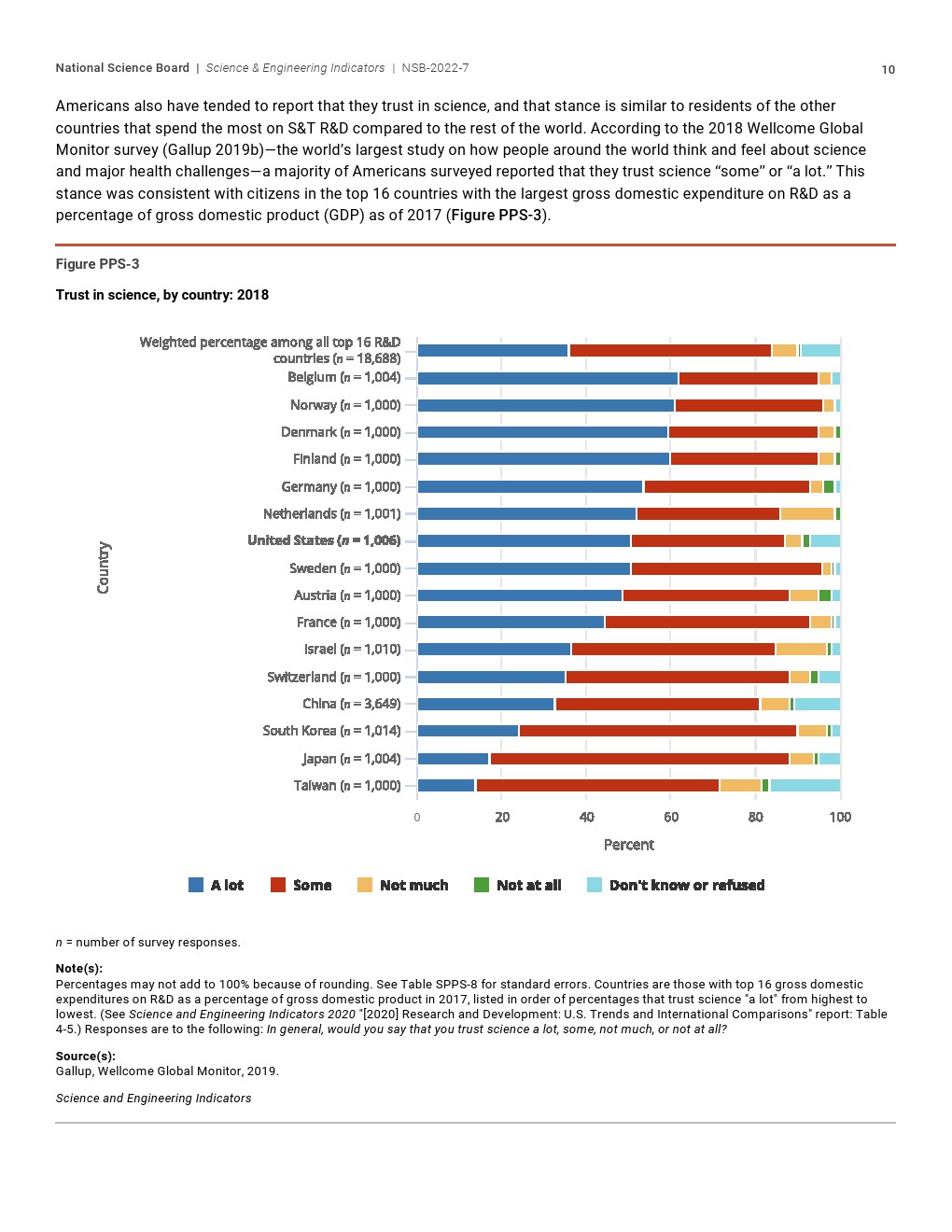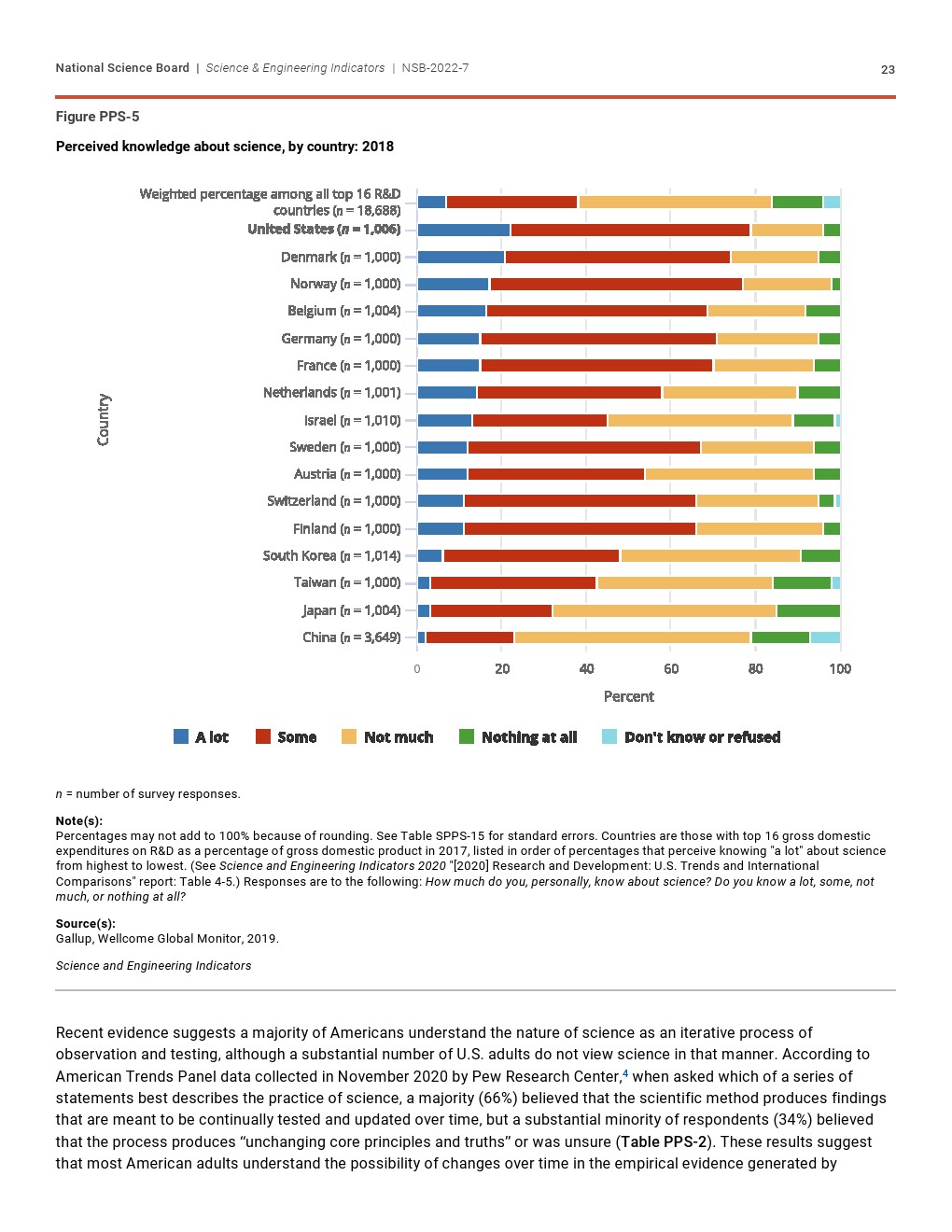 美国国家科学委员会发布了“2022年科学与工程指标”,介绍了公众对科学技术(S&T)的看法、公众对科学研究过程的熟悉程度、美国成年人接触科学信息来源以及他们参与科学活动的情况。美国成年人包括居住在美国家庭中的年满18岁的人。