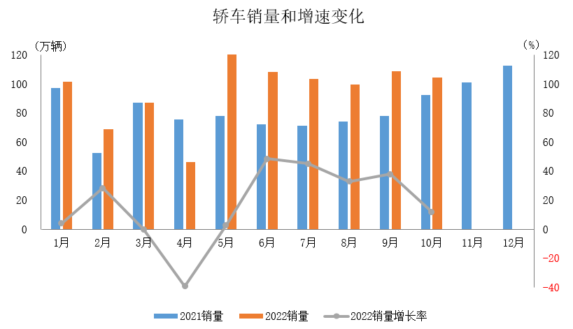 2022 年 1-10 月,乘用车共销售 1921.8 万辆,同比增长 13.7%。