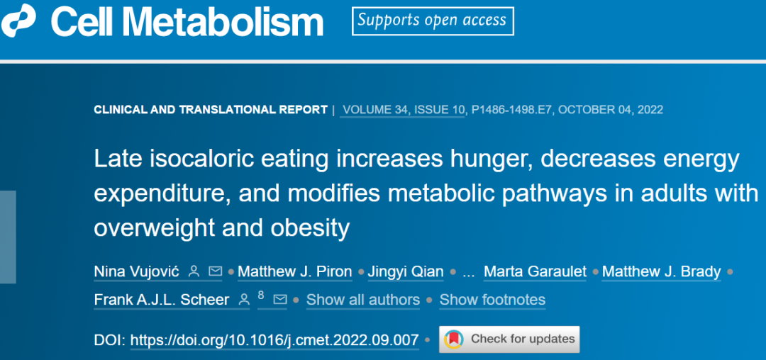简单来说,吃饭较晚会增加清醒时的饥饿感,降低24小时瘦素的分泌和核心体温以及清醒时的能量消耗,还会改变脂肪组织相关基因表达,增加脂质储存。