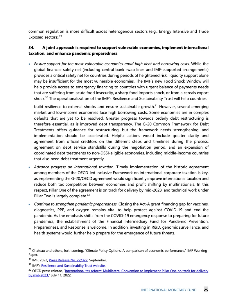 相应的,我们在上个月发布的最新一期《世界经济展望》将我们对明年全球经济增长的预测值下调至2.7%;我们还预计,占全球产出三分之一以上的国家的经济将在今年或明年的部分时间出现收缩。此外,正如我们为二十国集团(G20)准备的一份最新报告所讨论的,近期的高频指标证实,经济前景已变得更加黯淡。
