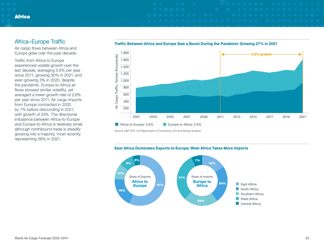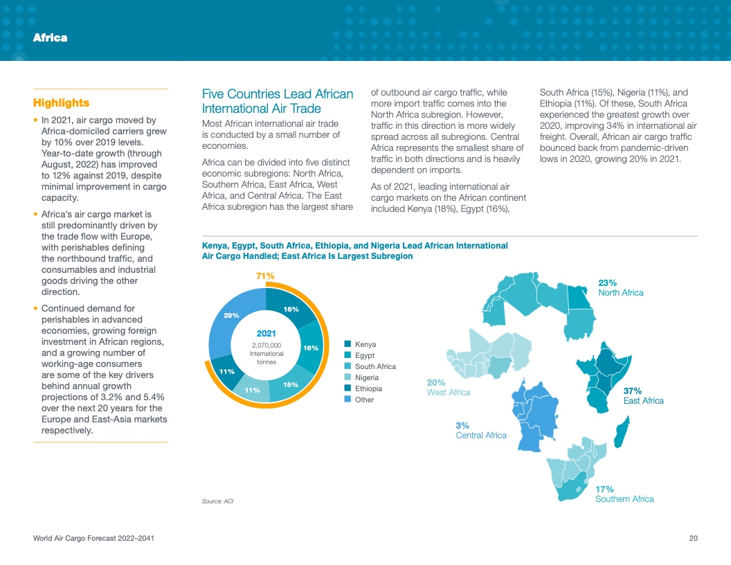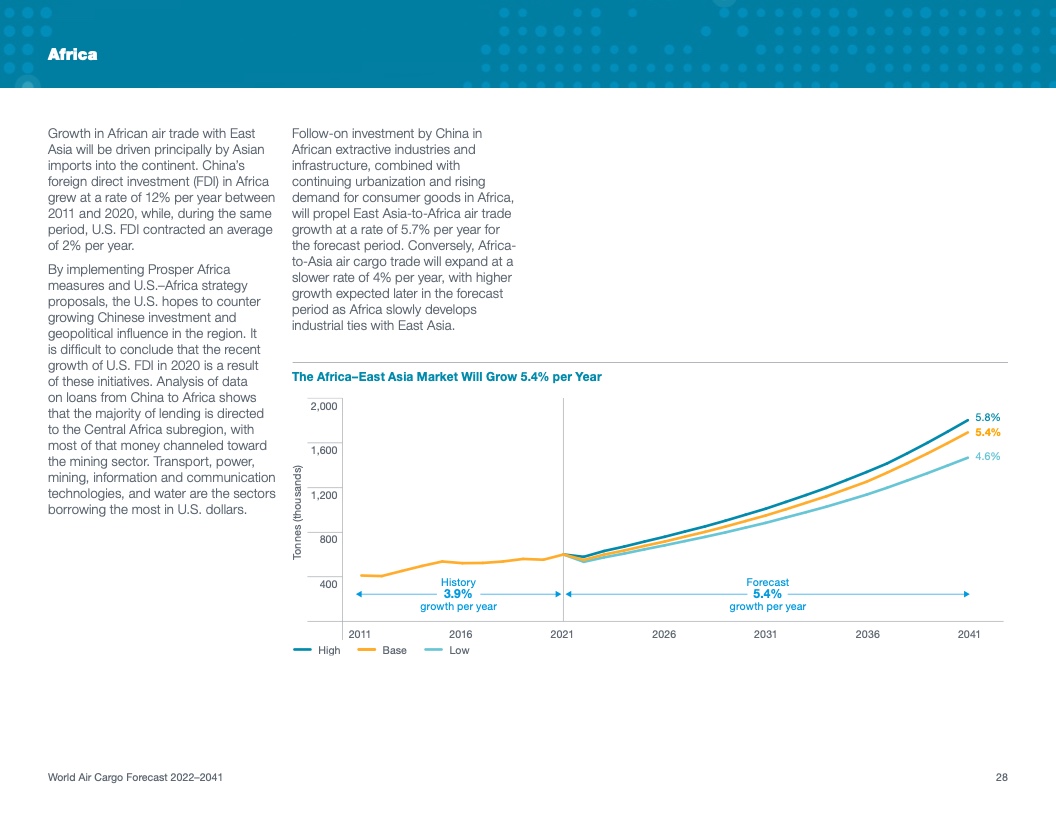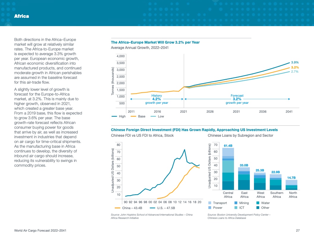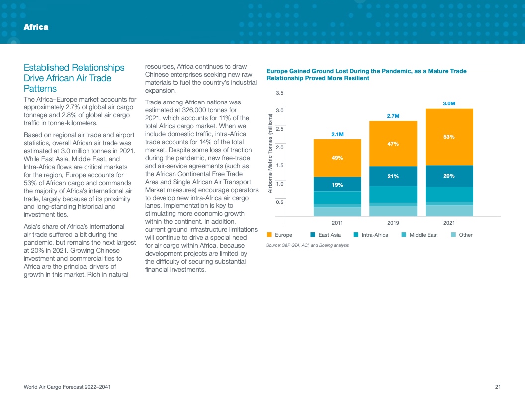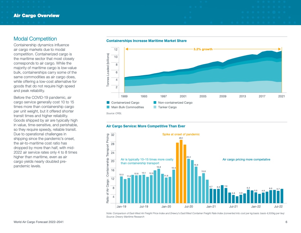 根据该公司最新发布的2022年《世界航空货运预测》(WACF),未来20年航空货运服务需求将保持强劲,全球航空货运量将翻番。