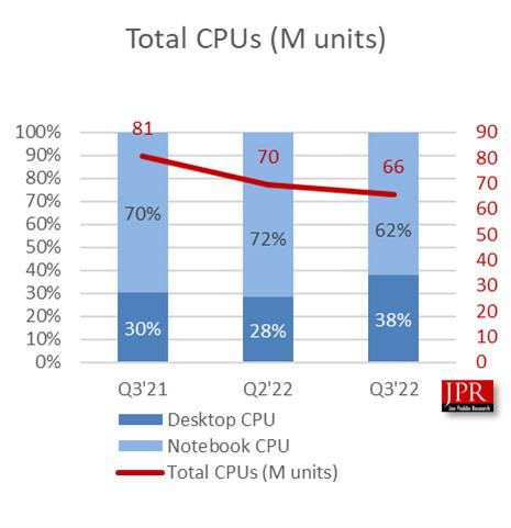 整个PC CPU市场在本季度下降了-5.7%,同比下降了-18.6%。