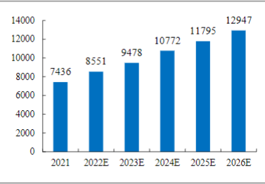图:2026 年中国地铁里程规模预计达到 12947 公里