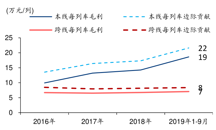 图:每列车的毛利与边际贡献