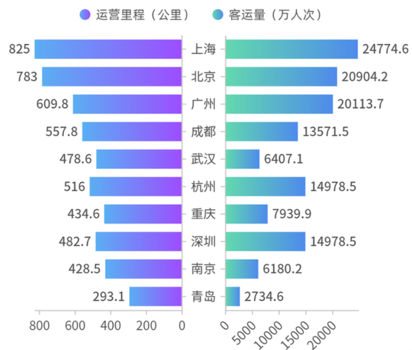 这其中运营里程前十的城市累计完成客运量 13.3 亿人次