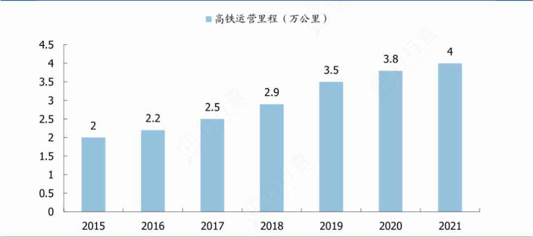 高铁建设快速发展,客运高速化趋势显著。2016 年 7 月,国家发展改革委、交通运输部、中国铁路总公司联合发布了《中长期铁路网规划(2016 版)》,部署规划了中长期铁路发展规划,在"四纵四横"基础上扩张至"八纵八横",具体规划为:到 2020 年,铁路网规模达到 15 万公里,其中高速铁路 3 万公里(覆盖 80%以上的大城市);到 2025 年,铁路网规模达到 17.5 万公里左右,其中高速铁路 3.8 万公里左右;到 2030 年,铁路网规模将达到 20 万公里左右,其中高速铁路 4.5 万公里左右。