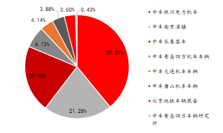 (2)中国中车:中国中车股份有限公司(简称 “中国中车”,CRRC)是经国务院同意,国务院国资委批准,由中国北车股份有限公司、中国南车股份有限公司按照对等原则合并组建的 A+H 股上市公司。经中国证监会核准,2015 年 6 月 8 日,中国中车在上海证券交易所和香港联交所成功上市。现有 46 家全资及控股子公司,员工 17 万余人,总部设在北京。