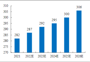 图:2026 年中国轻轨里程规模预计达到 306 公里