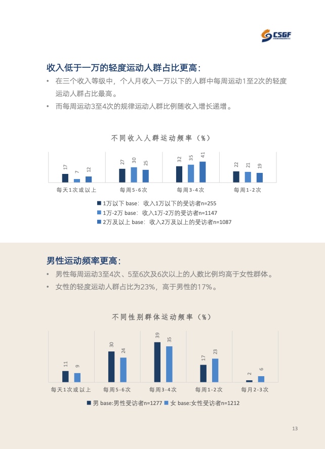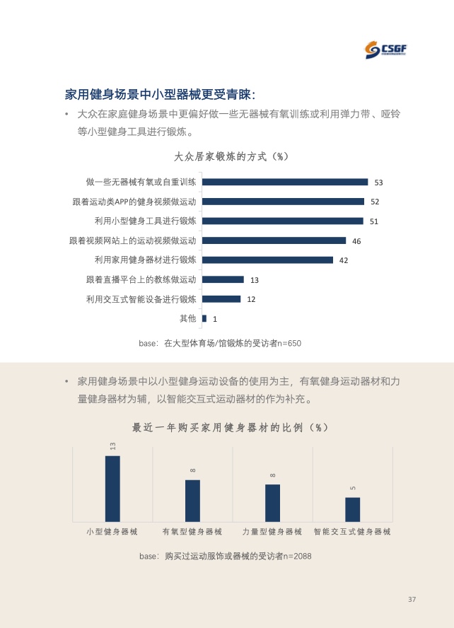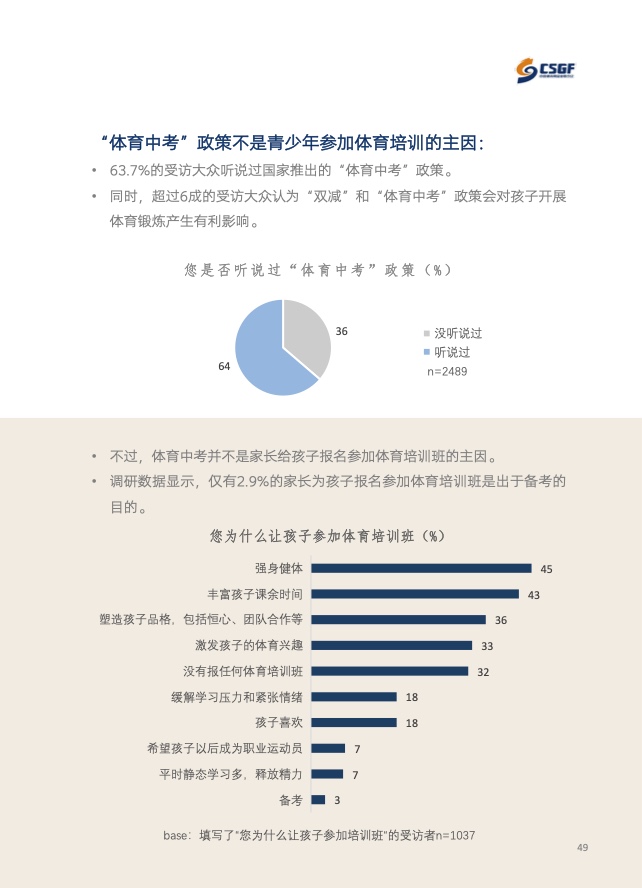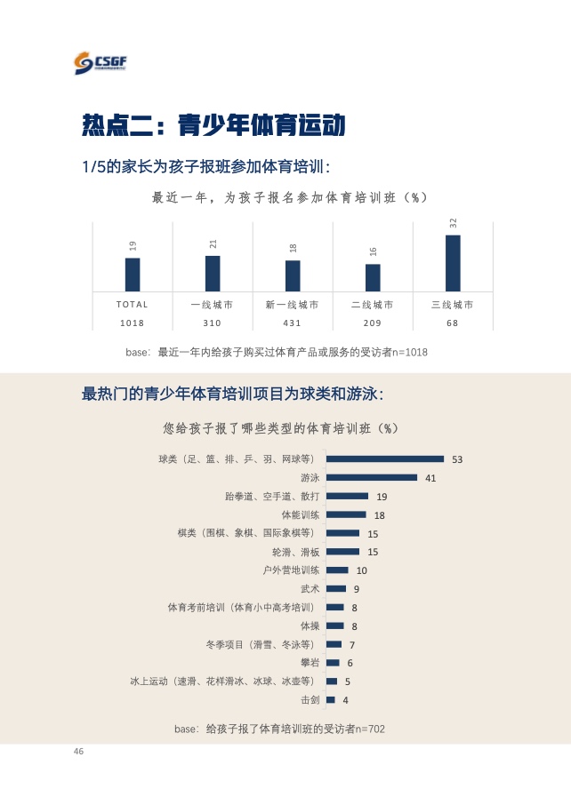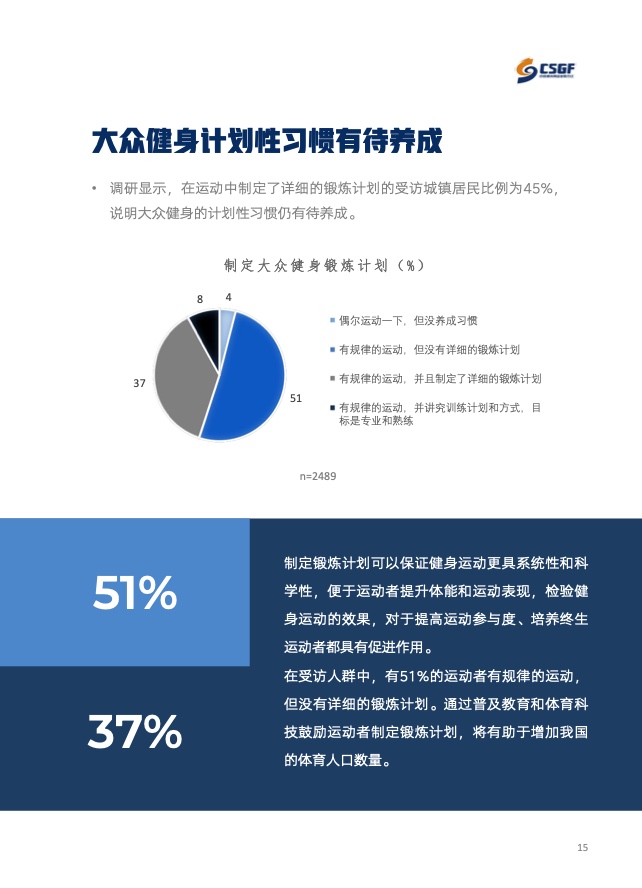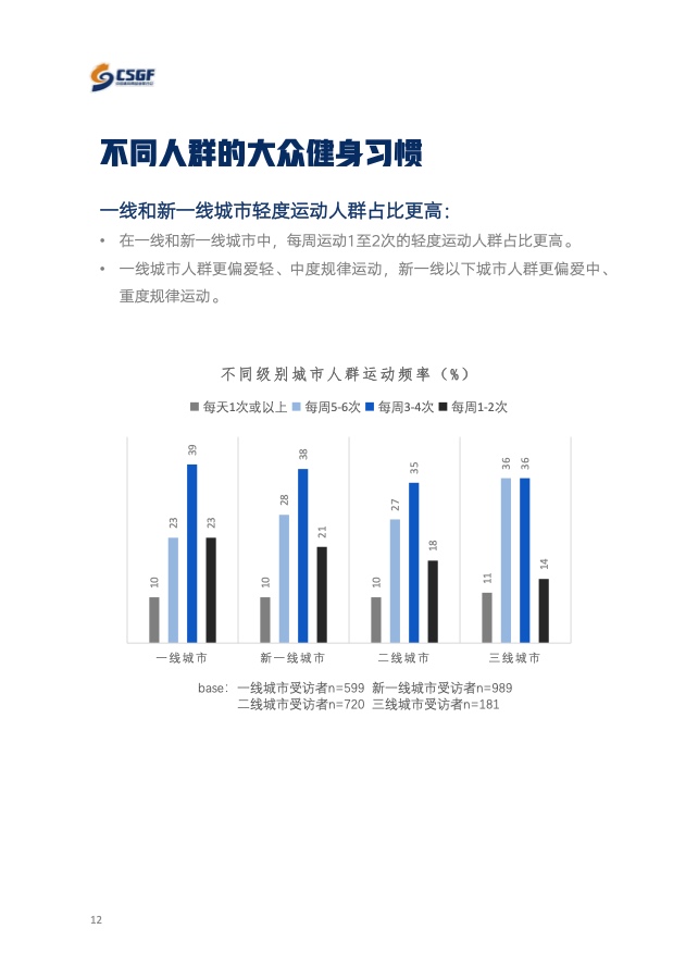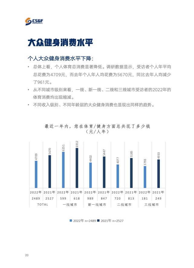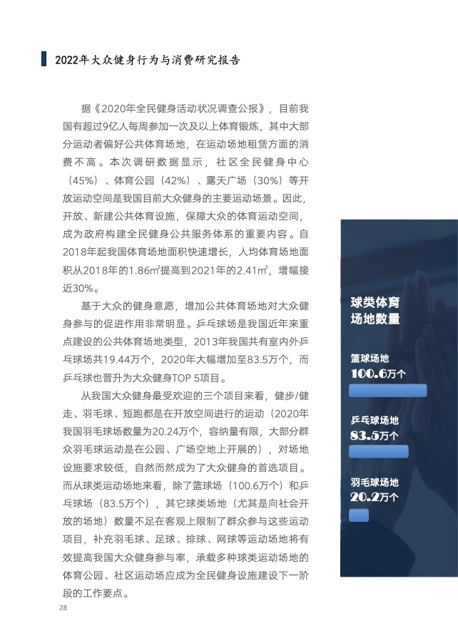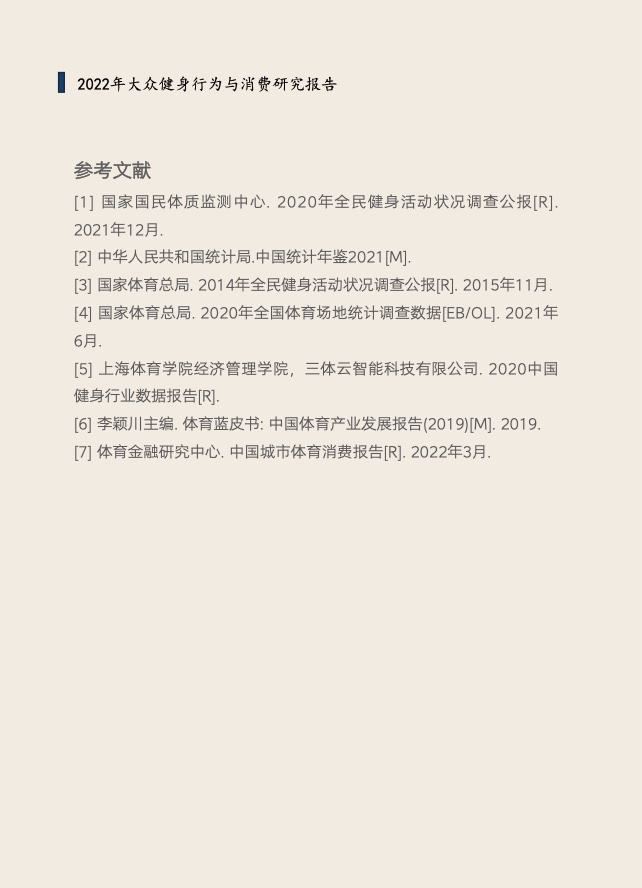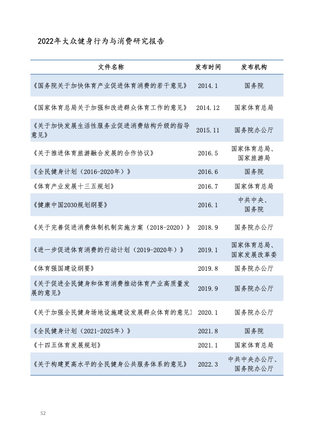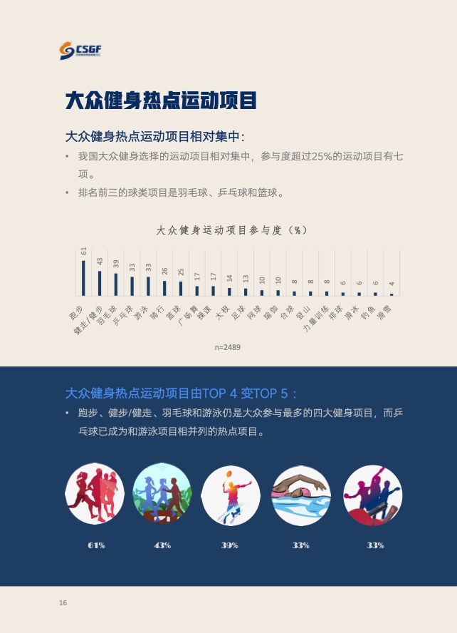《报告》共分为五个章节,分别从参与、消费、场景与器材、消费热点以及政策和趋势的维度,对大众运动的行为与消费展开了一系列的研究。除特别注明外,本报告中的“大众健身”均特指城市居民体育活动。