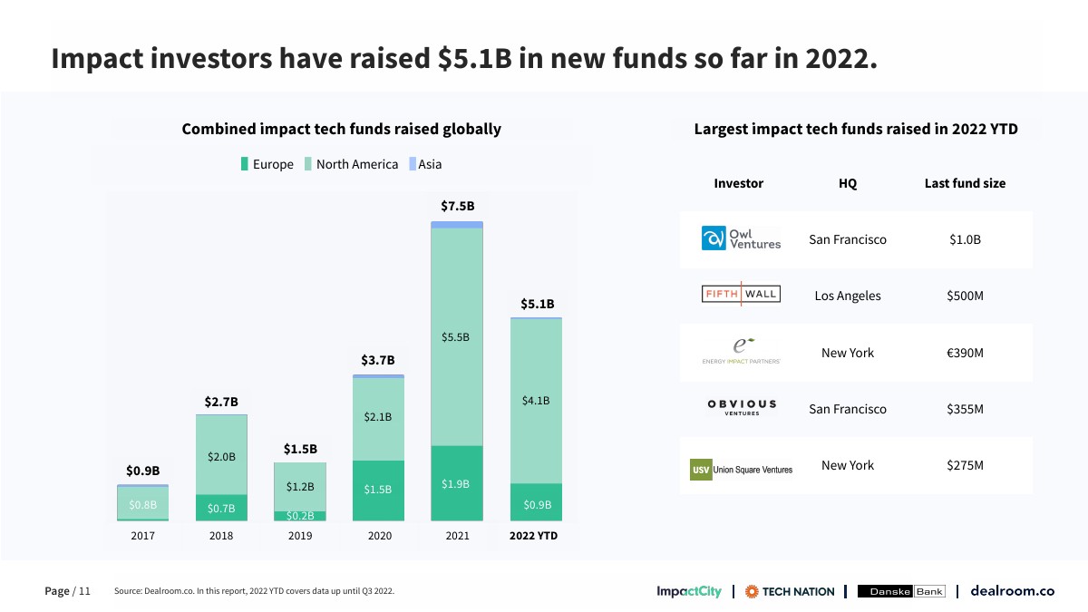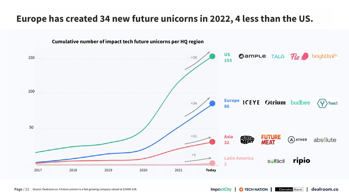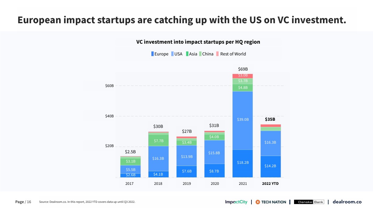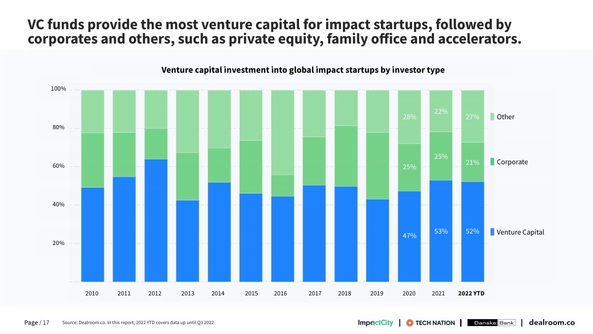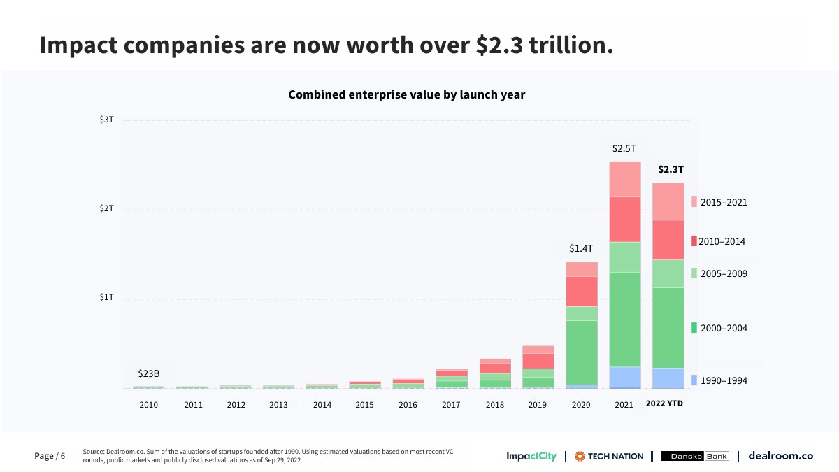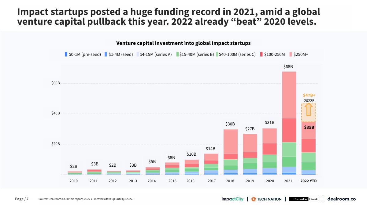 影响力初创公司在2021年创纪录的筹集了680亿美元。虽然没有达到2021年的高点,但2022年已经超过2020年筹集的350亿美元,影响力初创公司现在的总价值为2.3万亿美元。