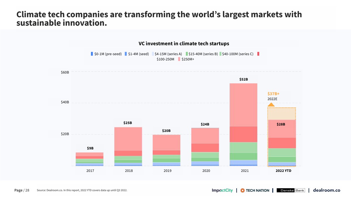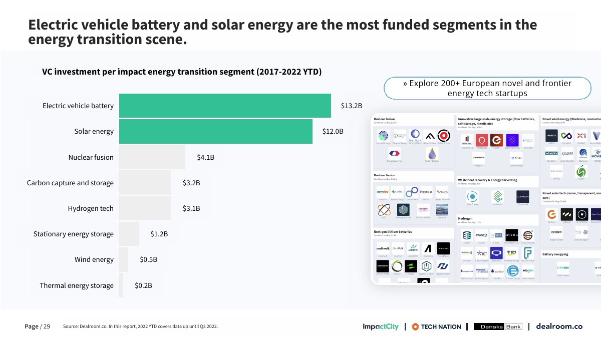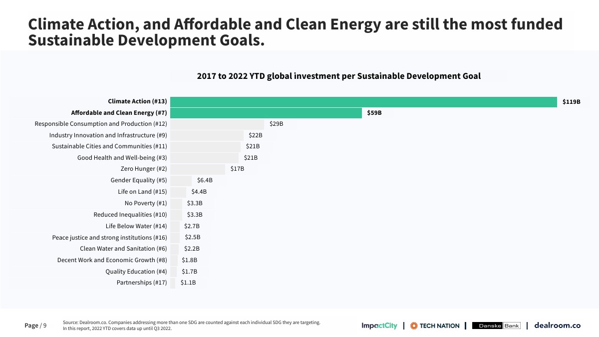 自2017年以来,应对气候行动和负担得起的清洁能源这些可持续发展目标的初创公司共筹集了1290多亿美元。到目前为止,与气候相关的可持续发展目标吸引了绝大多数影响力投资。电动汽车电池和太阳能等热门行业是能源转型领域获得资金最多的。