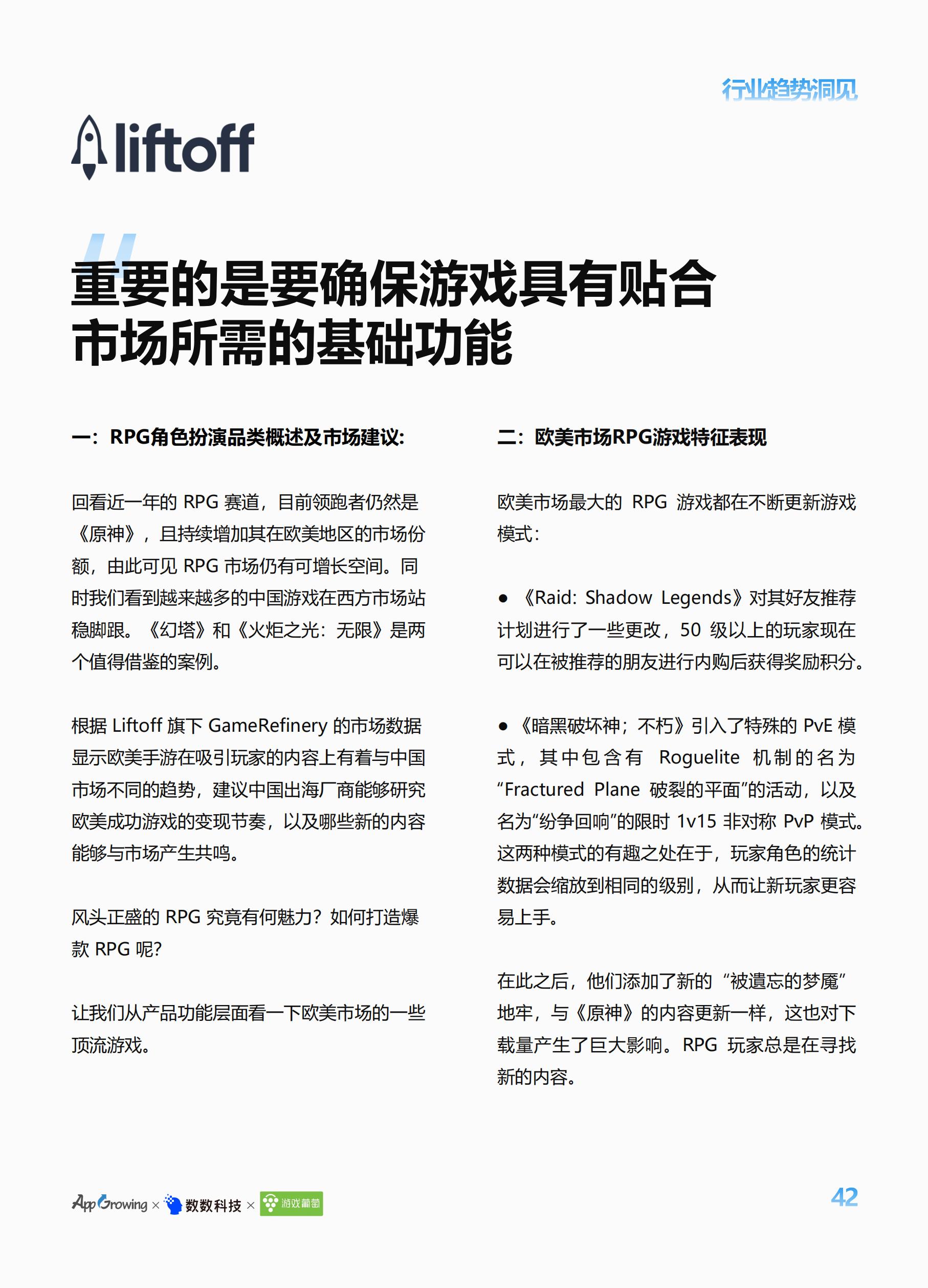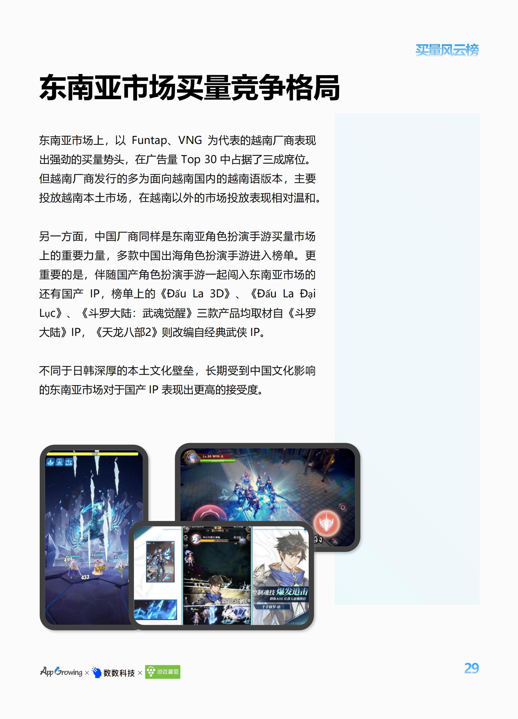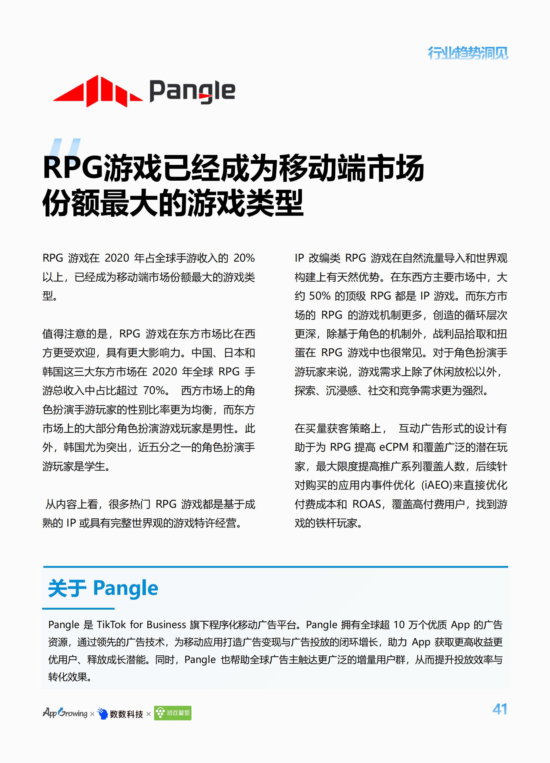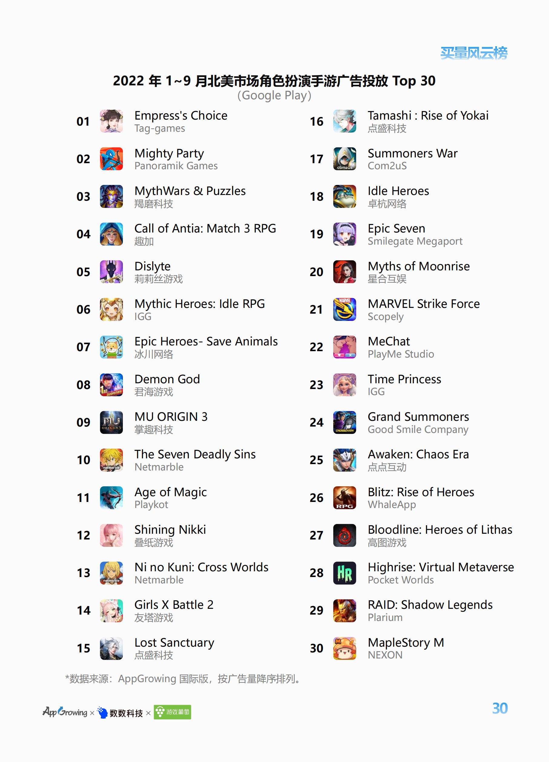为了更全面地了解全球角色扮演手游市场变化,AppGrowing 联合数数科技、游戏葡萄发布《2022年中国角色扮演手游出海观察》,从市场现状、营销趋势、出海战绩、买量排行、成功案例等方面解读 2022 年角色扮演手游出海形势。