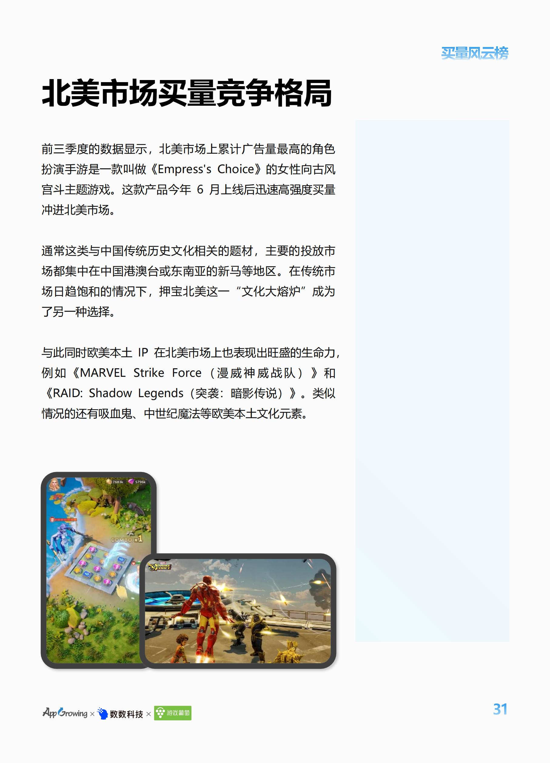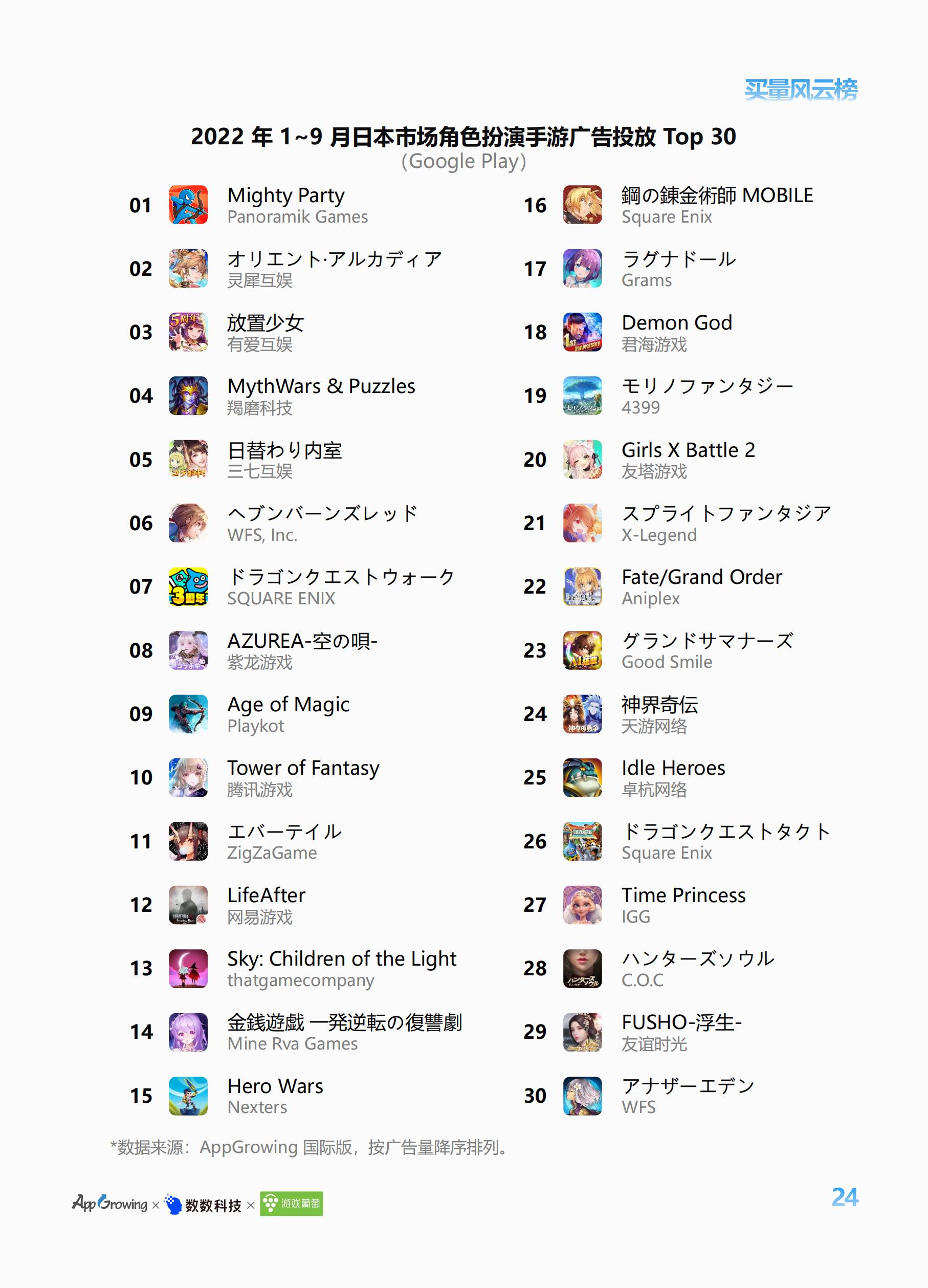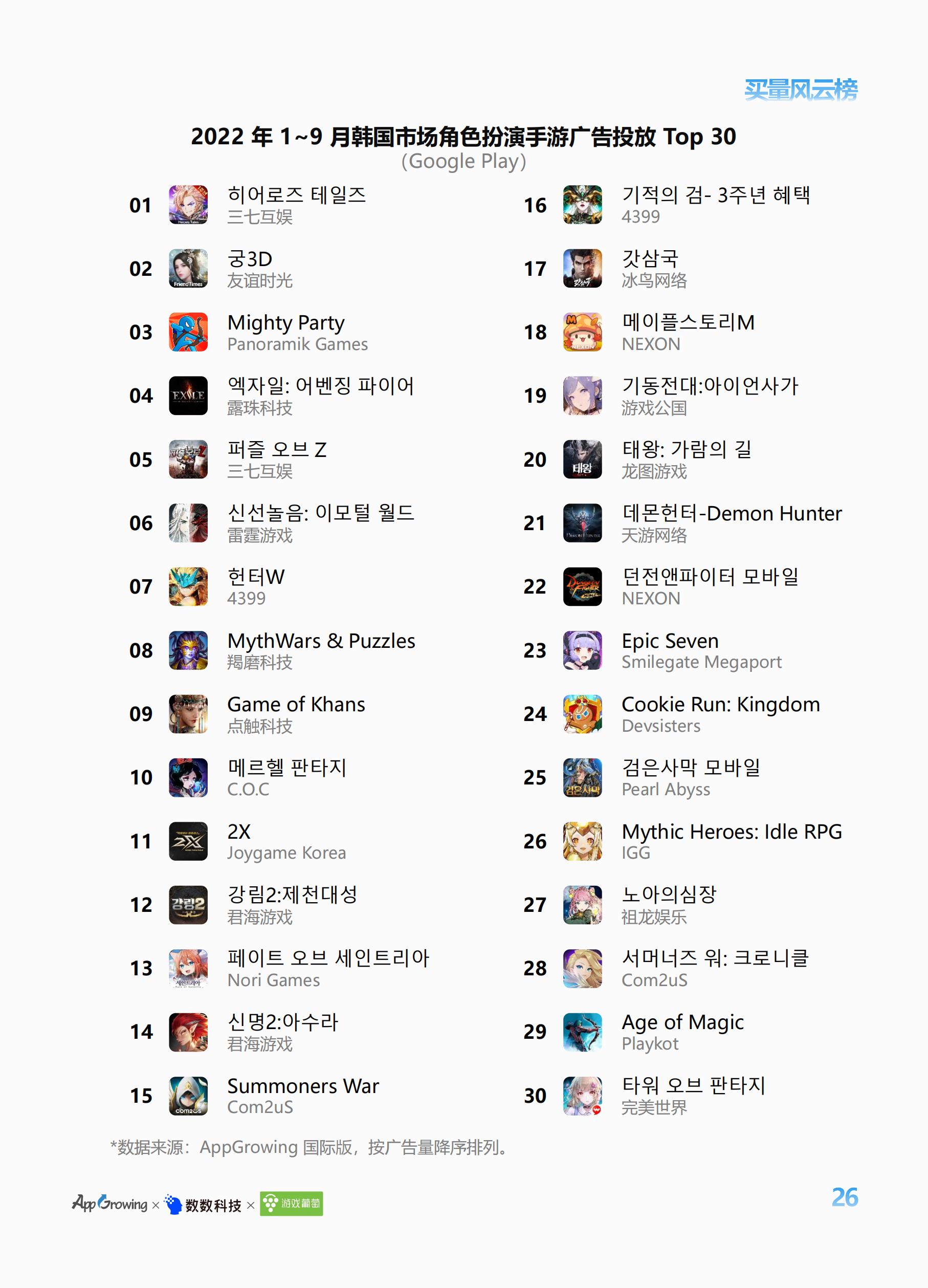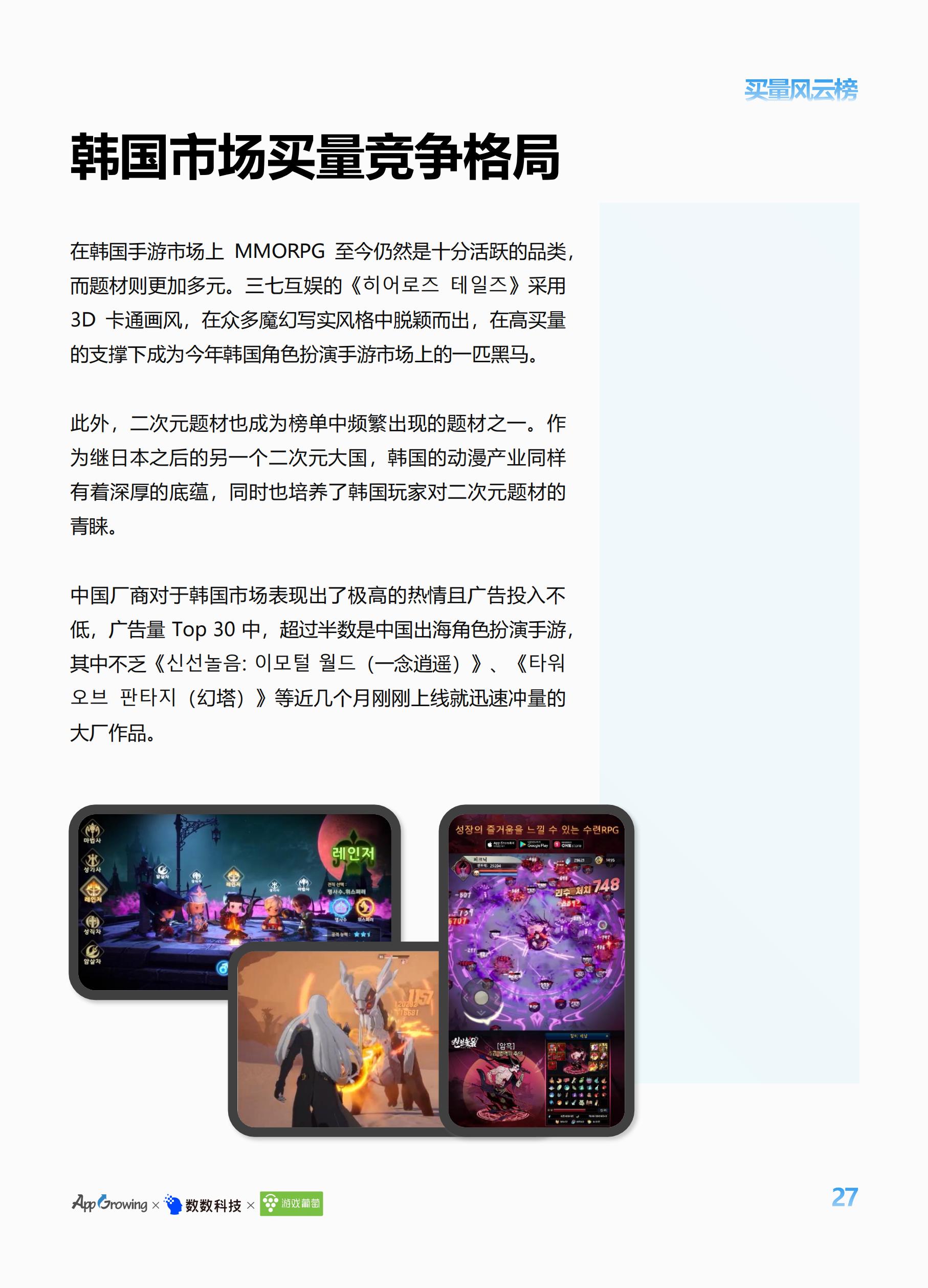 为了更全面地了解全球角色扮演手游市场变化,AppGrowing 联合数数科技、游戏葡萄发布《2022年中国角色扮演手游出海观察》,从市场现状、营销趋势、出海战绩、买量排行、成功案例等方面解读 2022 年角色扮演手游出海形势。