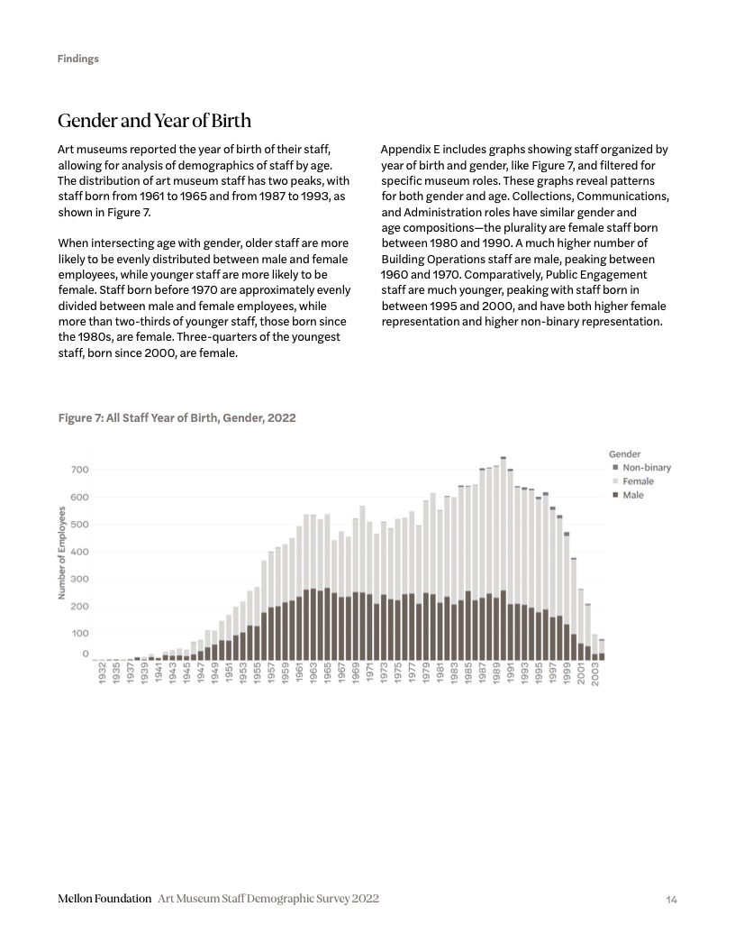 梅隆基金会(The Mellon Foundation)对美国和加拿大的博物馆进行的第三次调查报告显示,与2015年和2018年进行的类似调查相比,艺术机构员工的多样性在全面增加。这项调查在今年2月至4月进行,与美国博物馆联盟和美术馆馆长协会合作,涵盖了北美328家博物馆和3万多名员工。报告显示,截至调查时,36%的博物馆员工是有色人种(POC),而2015年为27%。调查还发现,虽然保安、设施和教育这些博物馆中最典型的多元化部门在疫情期间遭受大量裁员,但这些部门在2022年变得更为多元化。在2021年招聘的所有博物馆员工中,45%是POC。