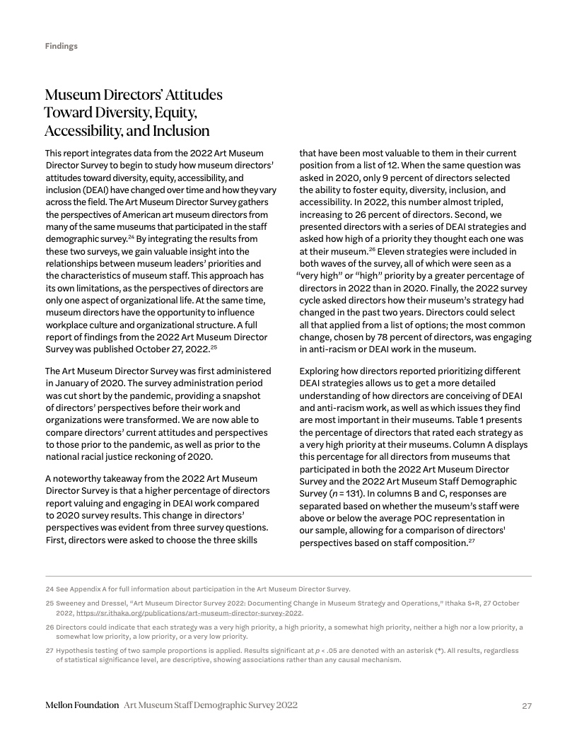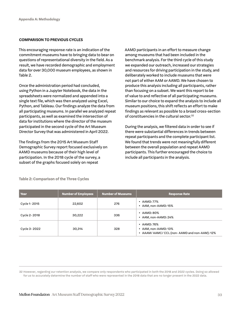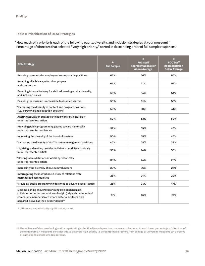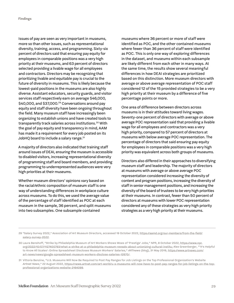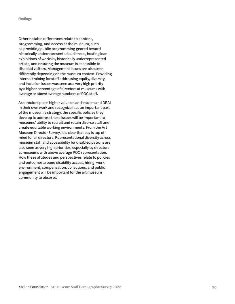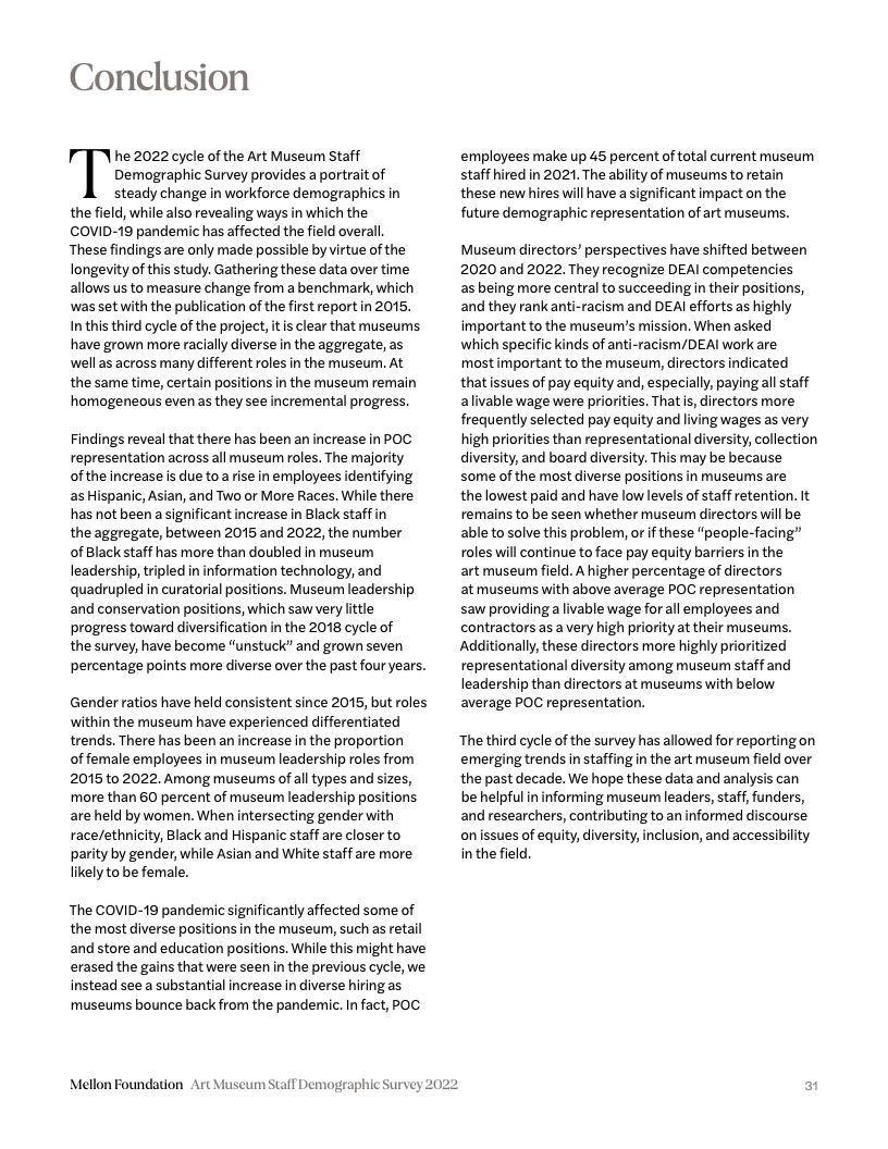 值得注意的是,2015年至2022年,在艺术机构担任领导职务的POC数量翻了一番。部门之间的多样性仍然不一致,POC在博物馆领导和策展员工中占20%,在公共参与员工中占35%,而在建筑维护员工中占47%。