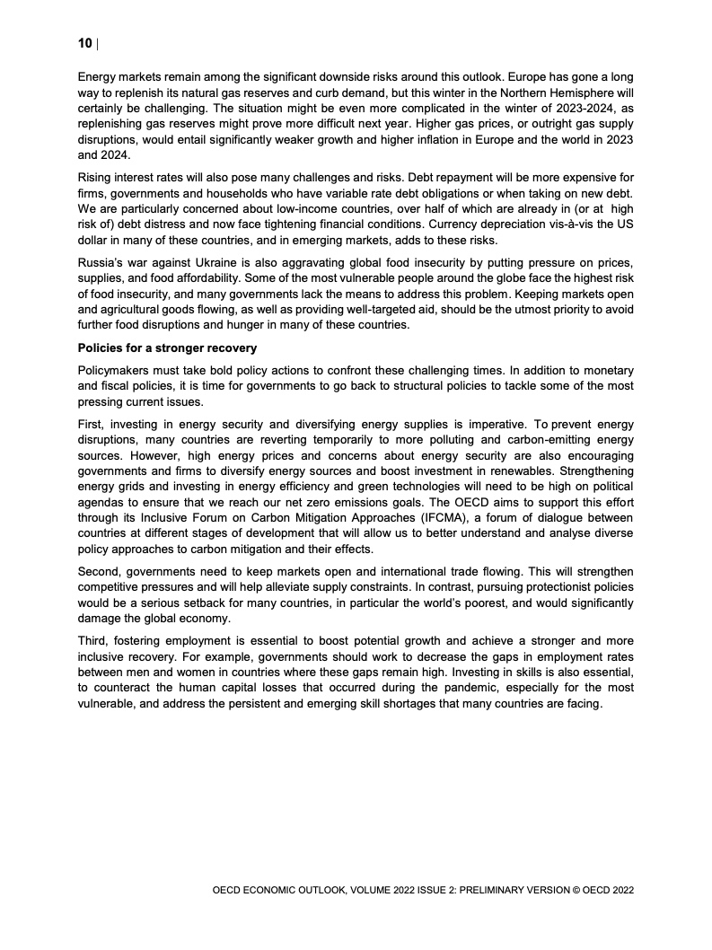 报告显示,由于俄乌冲突引发的大规模和历史性的能源冲击继续刺激通胀压力,削弱购买力并增加全球风险,预计未来一年全球经济增长将进一步放缓。