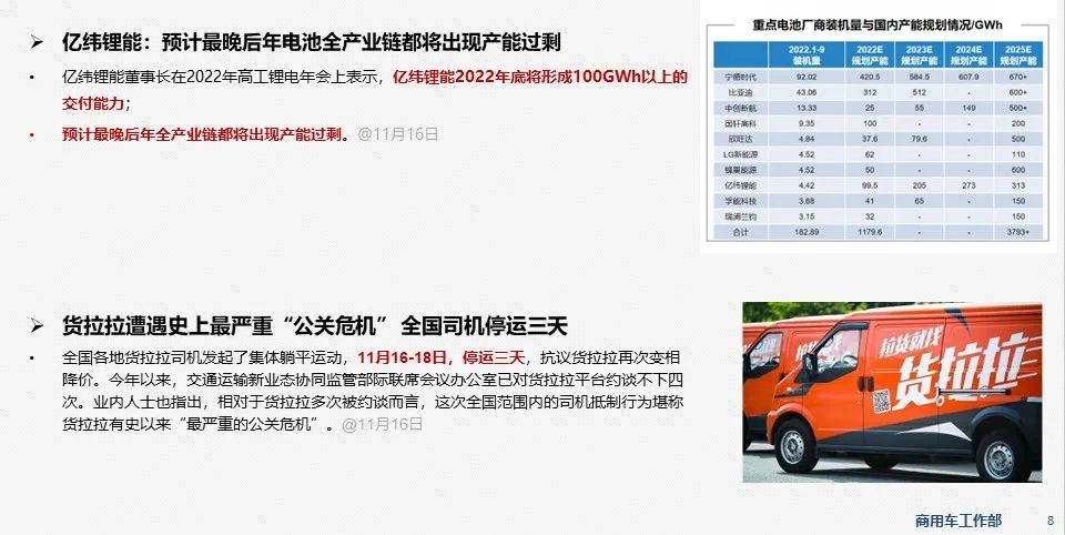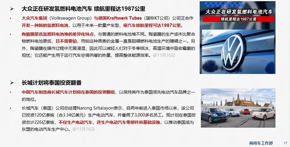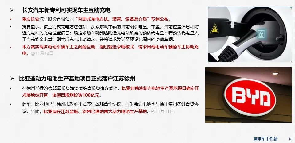 - 11月17日,湖南省长沙市发布关于印发《关于加快推广新能源货车的实施意见》的通知,加快新能源货车销售使用。
